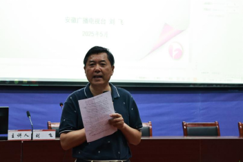 5月22日下午,安徽广播电视台安庆记者站副站长、主任记者、安徽师范大学硕士研究生实践导师刘飞应邀在2010307会议室作题为“用长期主义打造有温度的精品力作”的专题讲座。讲座由新传学院教授沈正赋主持,2024级新闻学本科生、2024级戏剧与影视专业研究生参与学习。