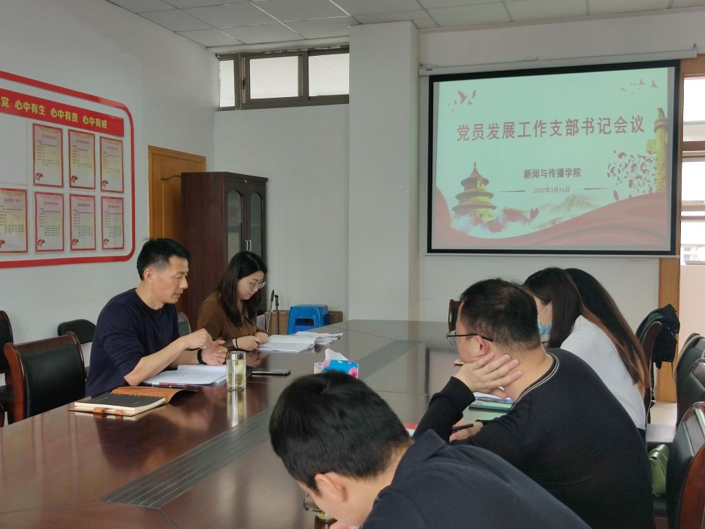 本网讯(新传学院党委办)3月16日下午,新传学院党委在学院508会议室召开学生党支部书记会议,对年度党员发展工作进行业务培训,会议由学院党委书记张师帅主持。