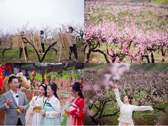 本次桃花节在安徽文化云平台进行播出,分为平铺镇三牌桃园会场和安徽师范大学会场,在三牌桃园打卡网红秋千、桃园热气球、幸福南瓜车,让游客置身美丽春天;参与桃花源寻宝、猜灯谜,丰富知识趣味多;观赏古筝、汉服表演,景美艺更美;饿了能动手做一做桃花糕,还能再带一些平铺的农产品回家。在安师大分会场,同学们表演精彩纷呈的歌舞节目以及以省立五中为背景创作的舞台剧《寻路》,校地合作,两处会场交相呼应。