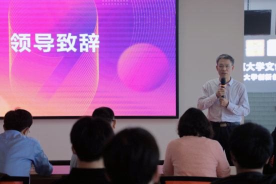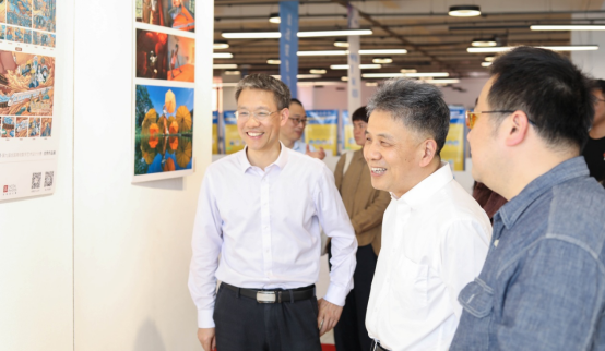 陆林指出了学科竞赛对人才培养的重要意义,指出大赛巡展的优秀作品围绕建党百年、可持续发展目标、脱贫攻坚、乡村振兴等主题展开,极具意义,强调师生们观摩展览是一次开放式、交互式的研讨交流,要通过观摩,深入研究,不断提高专业水准,多创作优秀作品,促进文化传播;崔光磊指出同学们通过参赛参展,能够将理论与实践充分结合,不断提升专业能力和综合素质;李丛芹指出本次展览作品具有较高艺术水准,希望同学们多学习、勤思考,为参加第十届全国高校数字艺术设计大赛做好充分准备。