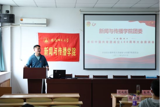 本网讯(文/赵影图/周弘历)2022年是中国共产主义青年团成立100周年。为激励广大团员青年在实现中华民族伟大复兴中国梦的新征程上奋勇前进,新闻与传播学院于5月10日组织师生观看庆祝中国共产主义青年团成立100周年大会,学院党委书记张师帅、全体专兼职辅导员共同观看大会实况,并对大会内容进行热议。