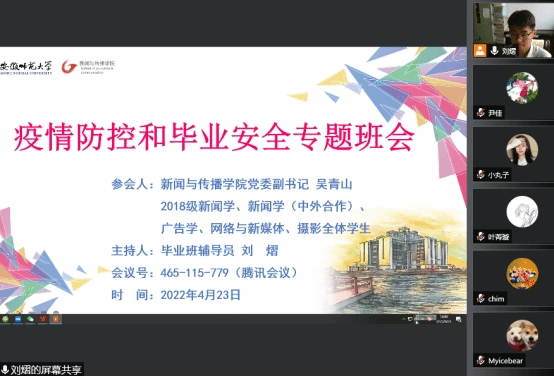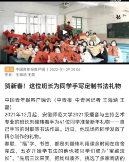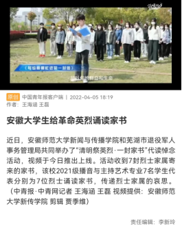 专题化讨论“青春的样子”。习近平总书记强调“大国要有大国的样子”,在“强国有我”的青春誓言下,青春又该具备怎样的样子?学院学工团队不断深化认识、凝聚共识,围绕学生在大学阶段的专业能力发展、道德品质提升、社会实践锻炼等内容,启动实施“青春的样子”思政教育系列活动。院党委副书记率先与同学们开启“青春的样子”大讨论,师生一道,围绕“青春在网络空间中的样子”展开话题讨论,达成共识,让青春在网络空间的样子更美、更有正能量。在五四青年节开展的主题团日活动中,学工团队与学生代表们一起深化对新传学子“样子”的讨论和认识。本学期以来,新传学子传承中华优秀传统文化、带室友回家过年、“清明祭英烈·一封家书”代读悼念活动等3次被中国青年报聚焦报道,积极彰显着新传学子该有的“青春的样子”。