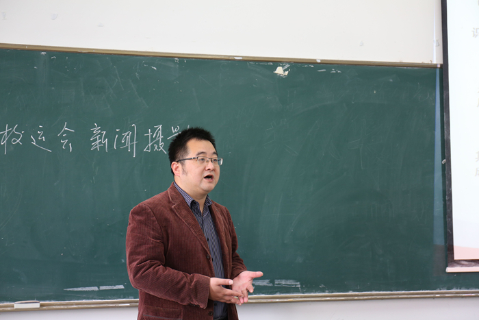 而后,赵昊以前几届学生在运动会中创作的优秀作品为例,从拍摄对象的选择,到决定性瞬间的把握,图文并述,详细讲解。他鼓励摄影专业同学眼、脑、手综合运用,“讲、观、评、拍、论”合五为一;提醒同学们应了解比赛,做到心中有数;全面思考,系统拍摄和记录;注重新闻价值判断及画面表现。