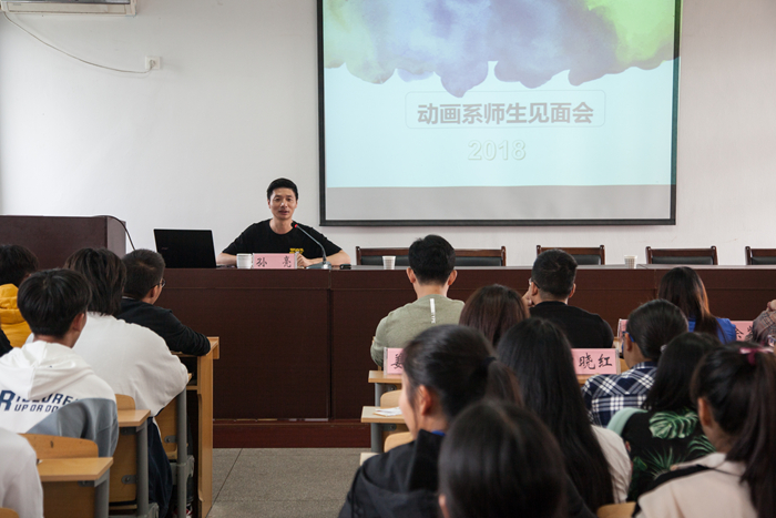 9月28日上午,动画专业在学院四楼会议室举办了专业介绍暨师生见面会。学院教学副院长马梅、党委副书记宋静出席会议并讲话,动画专业负责人孙亮、动画专业教师代表夏莹莹、袁琪、余紫咏、蔡帆及2018级动画(含中韩)专业全体新生共同出席了会议。会议由孙亮主持。