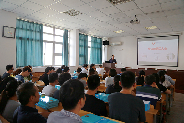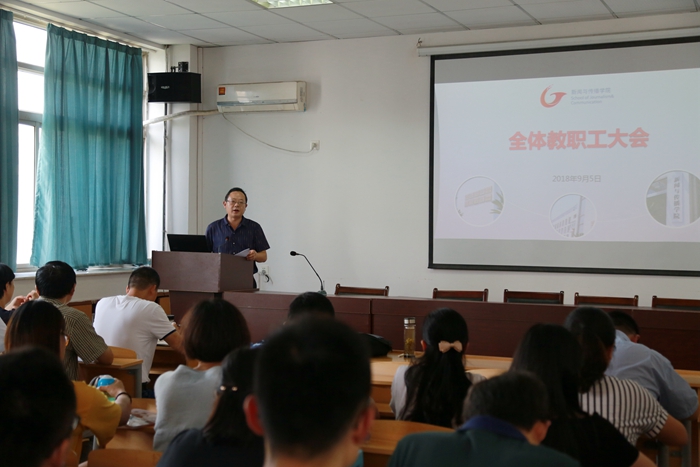 9月5日下午,新闻与传播学院隆重召开了新学期第一次全院教职工大会,回顾上半年工作并部署新学期安排。会议由院长杨柏岭主持。