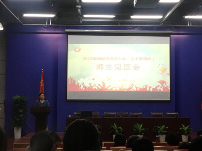 9月14日,新闻与传播学院2018级新闻传播学大类(含中英新闻)师生见面会在2010307演播厅教室举行。会议由教学副院长马梅主持,新闻学专业负责人肖叶飞、广告学专业负责人芮宏明,以及部分专业老师均出席会议,新闻传播学类学(含中英)2018级新生参加了会议。