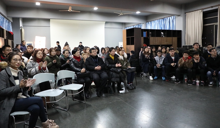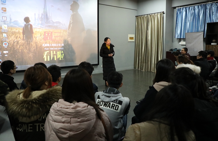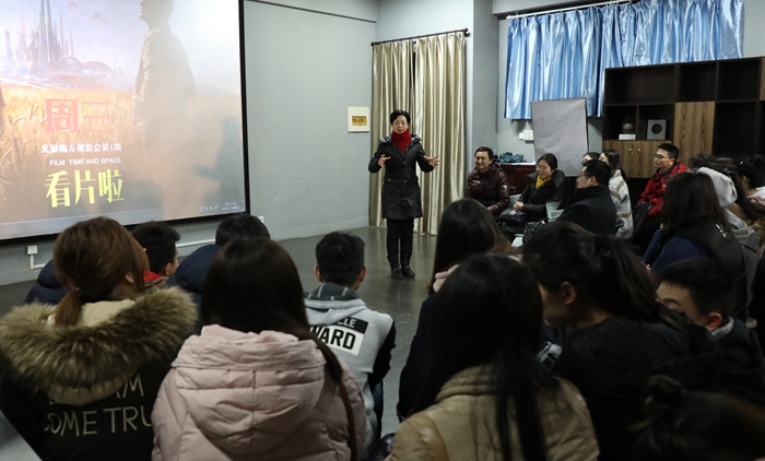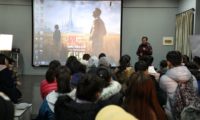 会上,李化来首先向来宾介绍了“光影魔方”观影会,阐明观影会旨在通过经典影片、原创作品的师生交流,增强新传学子的影视创作能力、欣赏评论水平、专业综合素养。本次展映的是由新传学院2014级金舟、朱柏成、孙启超和孙国耀等优秀学子耗时半年共同制作的4k高清影片《O2》,影片主题是围绕校园贷款引发的关于学业、事业、亲情、友情的主题电影。随后观影会正式开始,观众们全神贯注到跌宕起伏的影片情节之中。