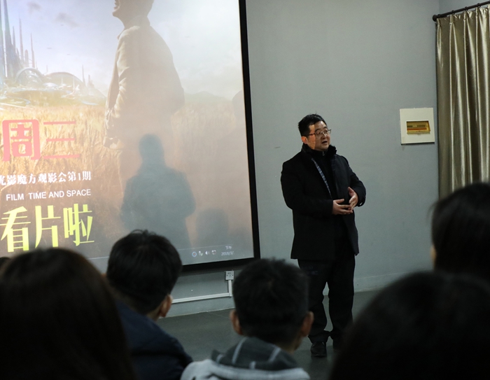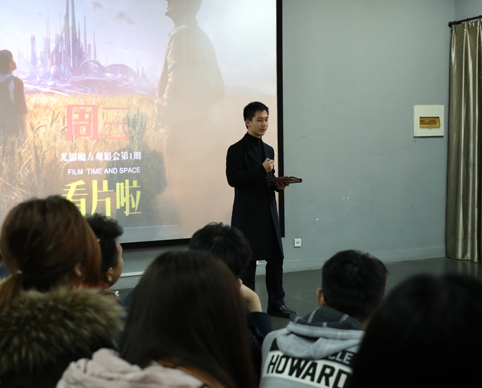 近日,新闻与传播学院本学期第一期“光影魔方”观影会在4号实验楼的影视摄影实验室举行。本次观影会进行了师大首部4k高清影片《O2》的首映式,活动分上下半场,分别由摄影系主任李化来副教授和2014级摄影专业学生朱柏成主持,副院长马梅、副院长赵昊、院党委副书记宋静、摄影专业教师、院团委教师和影片主创团队成员来到现场,活动吸引了来自校内外、各年级各专业的数十位影视爱好者。