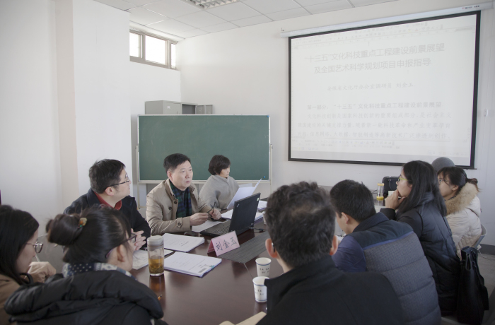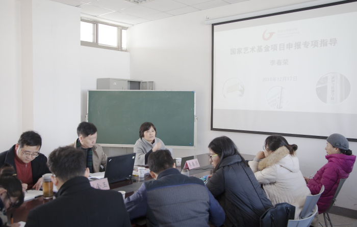 刘金玉主任就国家社科基金艺术学的申报做了辅导讲座,讲解了“十三五”文化科技重点工程建设前景展望,介绍了文化科技基金四大原则、六大目标、五项主要任务和九项重点工程等内容,重点针对全国艺术科学规划项目的申报作出相应指导,指出设计审核自己研究的课题,认真编写项目课题论证,还要处理好理论与实践统一、共性与个性、数量与质量等几个方面的问题。