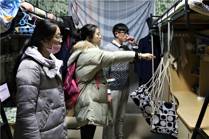 本次走访中,宋静特地看望了大四空乘专业即将毕业的学生,和他们谈谈毕业后的打算,拉近距离,了解毕业生的生活和心理。宋静呼吁毕业生们在做好考研、实习、就业等重要事情的同时,也要注意健康和安全,创造洁净寝室。在本次走访中,大部分寝室没有出现使用违规电器的现象,无安全隐患,且地面干净整洁,物品摆放整齐。宋静对同学们别出心裁的宿舍装饰以及干净整洁的宿舍环境连连陈赞,同时也对部分寝室物品堆放,门窗透气等生活问题提出要进行整改。对待大一新生,她鼓励同学们要尽快适应大学集体,融入集体的生活。