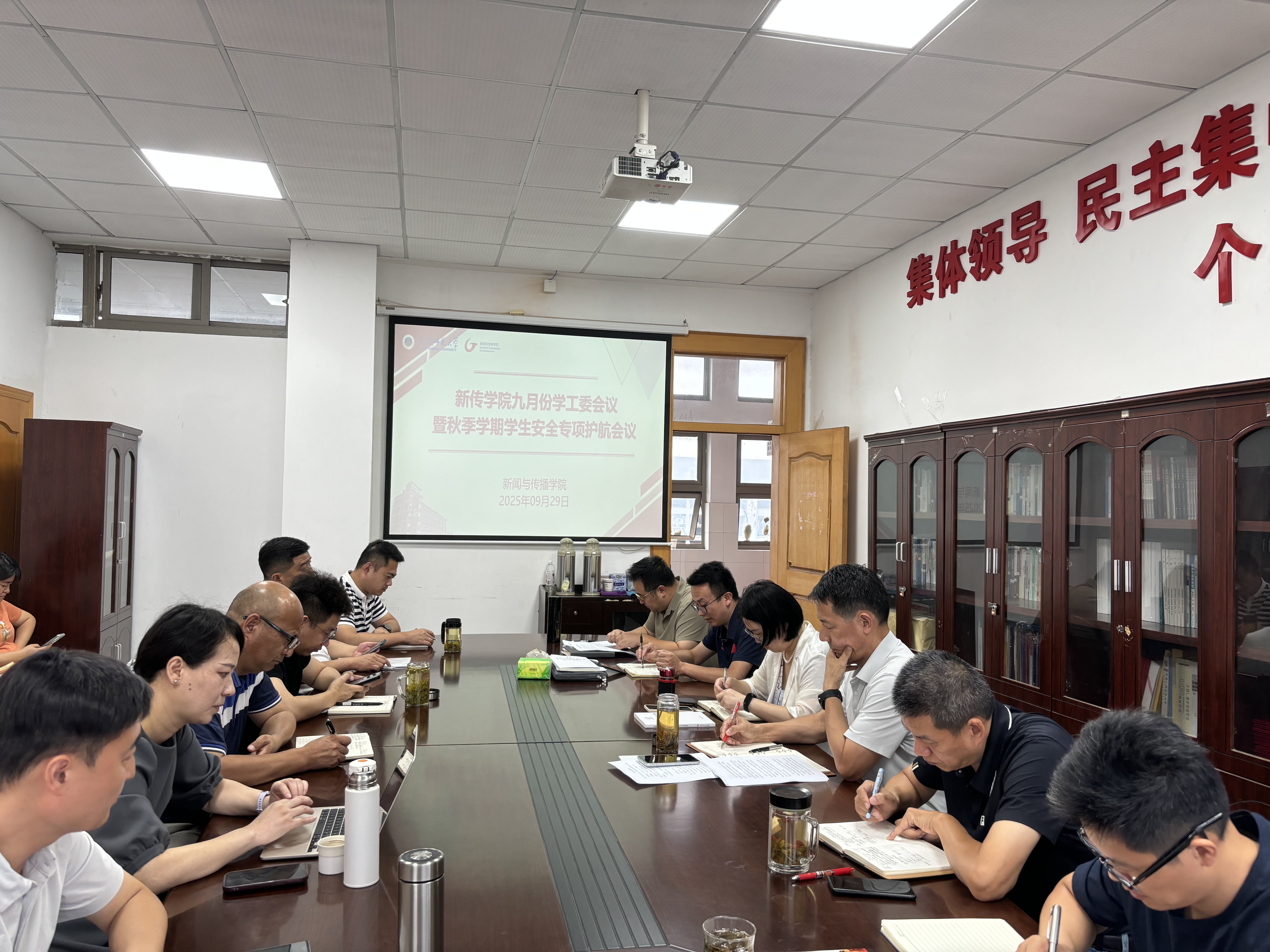 9月29日下午,新闻与传播学院在508会议室召开学工委会议暨秋季学期学生安全专项护航会议。会议由院学工委主任、党委书记张师帅主持,学院班子成员、专业负责人、学位点负责人、团委书记、全体专兼职辅导员、教学办及研工办秘书参加会议,会议围绕本科生、研究生安全教育管理及实验室安全管理等重点议题展开深入研讨与部署。