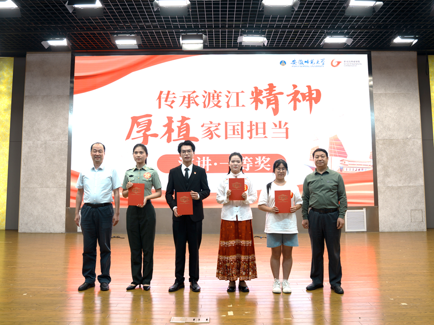 经过激烈角逐,新闻与传播学院的《传承·担当:一封来自江畔的青春誓言》、历史学院的《以史为舟,渡时代之江》、经济管理学院的《传承渡江精神 勇担时代使命》以及法学院的《家国同桨,争渡新江》四部作品荣获演讲比赛一等奖。