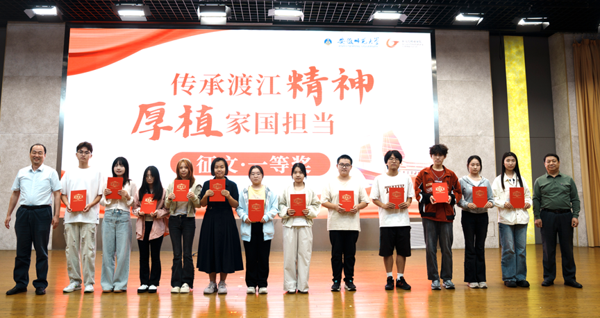 同期,征文比赛也收获丰硕成果,共评选出12篇一等奖作品。地理与旅游学院的《渡江精神照前路,家国担当铸心间》、外国语学院的《凭舵魂传家国情,以史炬照国防路》、计算机与信息学院的《数字长江上的新舵手:网安学子的数字渡江精神传承》等佳作,以独特视角和生动文笔,深刻表达了师大学子对渡江精神的时代解读与家国担当。颁奖典礼上,袁玉光、乔静等领导老师为获奖选手颁发了荣誉证书并合影留念。