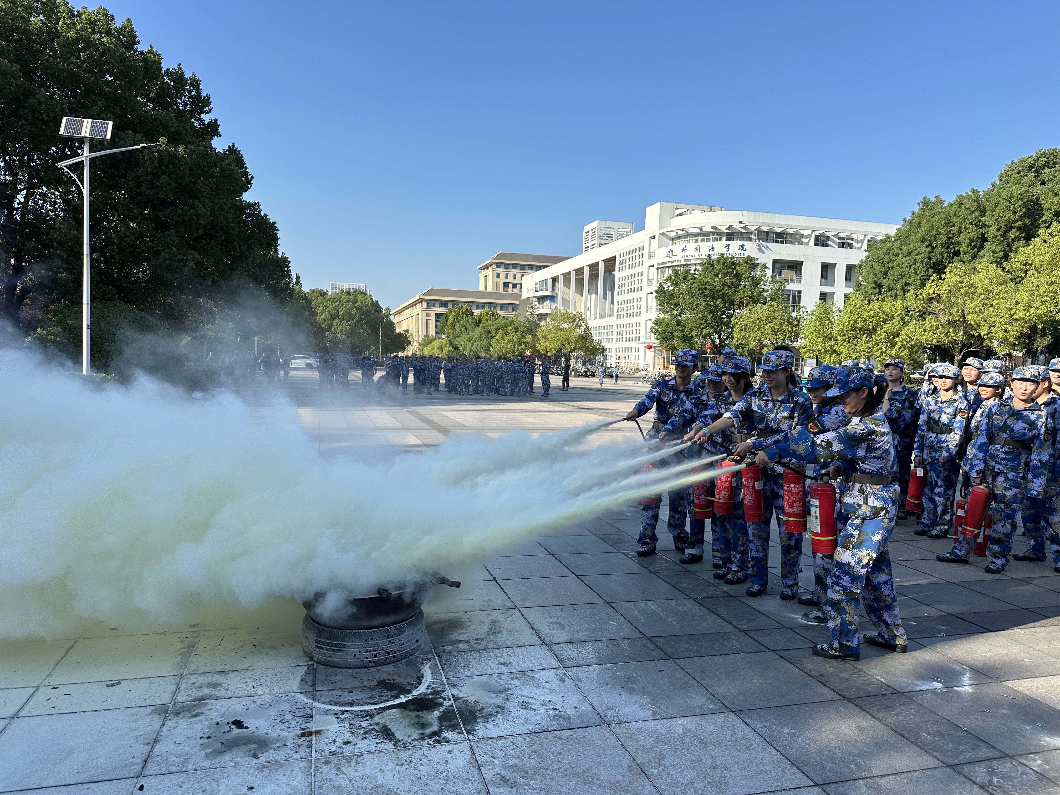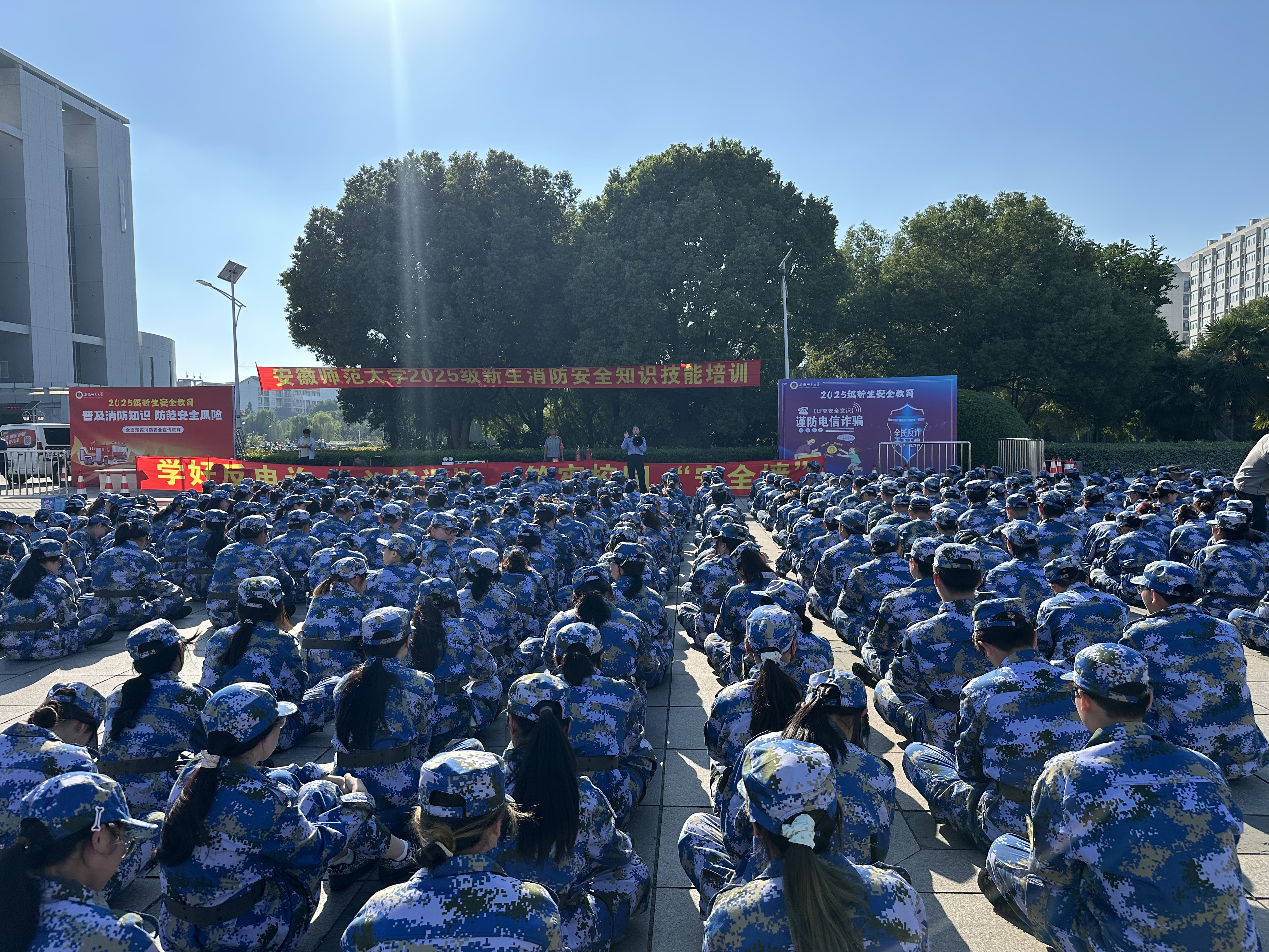 本网讯(新闻与传播学院 刘成俊)2025年10月9日下午,学院2025级全体本科新生在敬文图书馆西侧参加学校统一组织的新生消防安全知识技能培训活动。培训会上,弋江区高校园区派出所民警、学校保卫处工作人员分别就防电诈知识、基本消防知识做出了相关介绍。学生还就如何使用灭火器进行了现场实操。