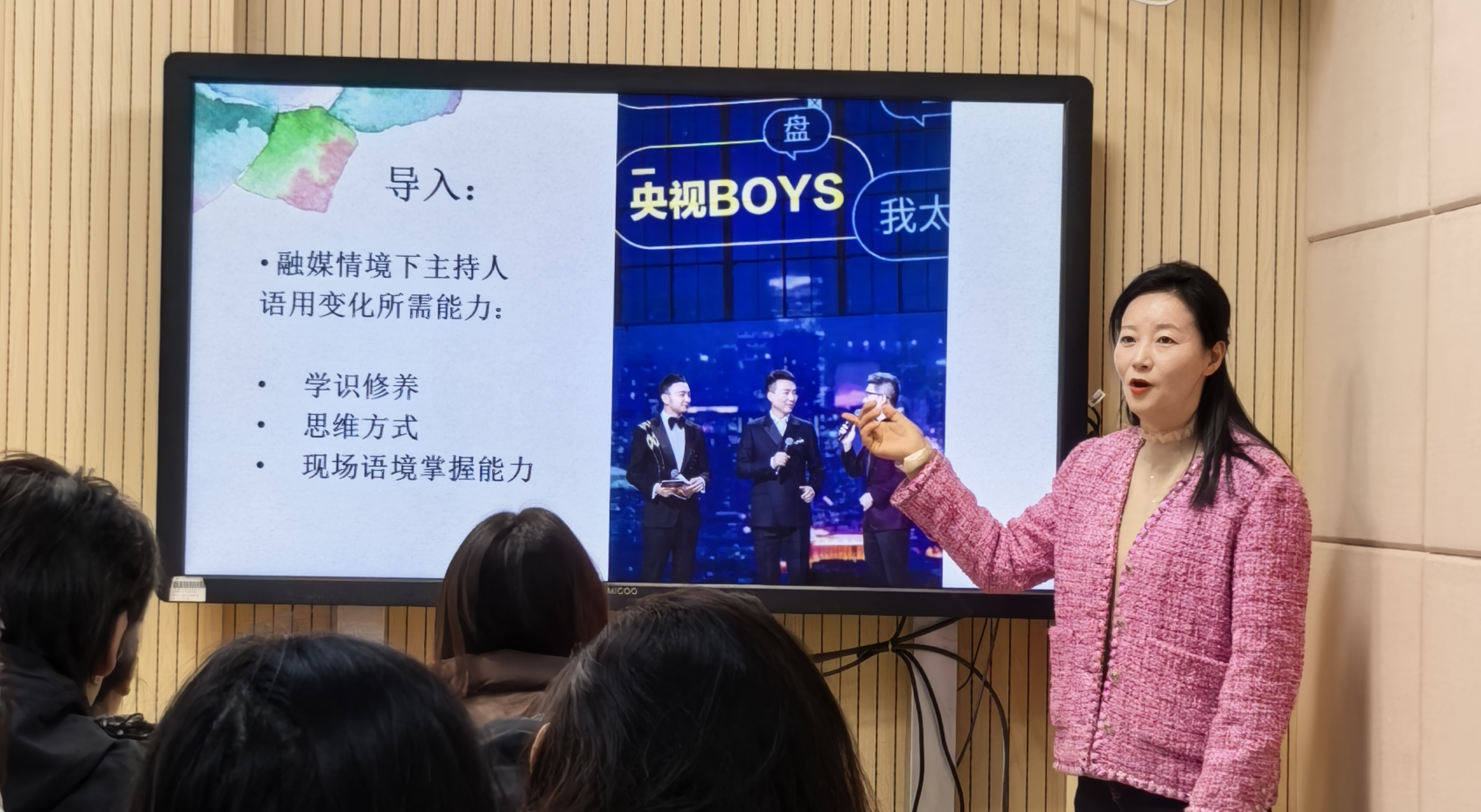 为深化教学改革,促进教师专业能力提升,加强课程教学经验交流,11月26日上午,新闻与传播学院播音与主持艺术专业教师徐丽娜在3号实验楼206教室开展了《思维与即兴口语》教学观摩课。播音与主持艺术专业负责人邵振奇以及纪婉茹等专业教师到场观摩交流。