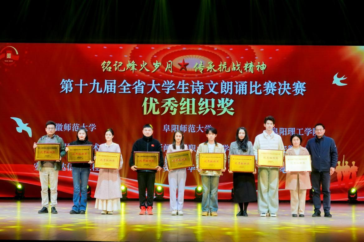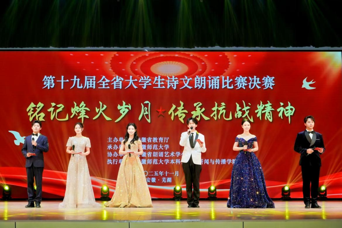十九载弦歌不辍,薪火相传。安徽省大学生诗文朗诵比赛不仅为全省学子搭建了切磋技艺、展现风采的青春舞台,更成为滋养青年心灵、传承优秀文化的沃土与窗口。同时,我校一直高度重视安徽省大学生朗诵比赛的参赛工作,学校播音与主持艺术等专业相关师生在赛场上的卓越表现与优异成绩,正是我校美育与语言文化教育成果的生动体现。
