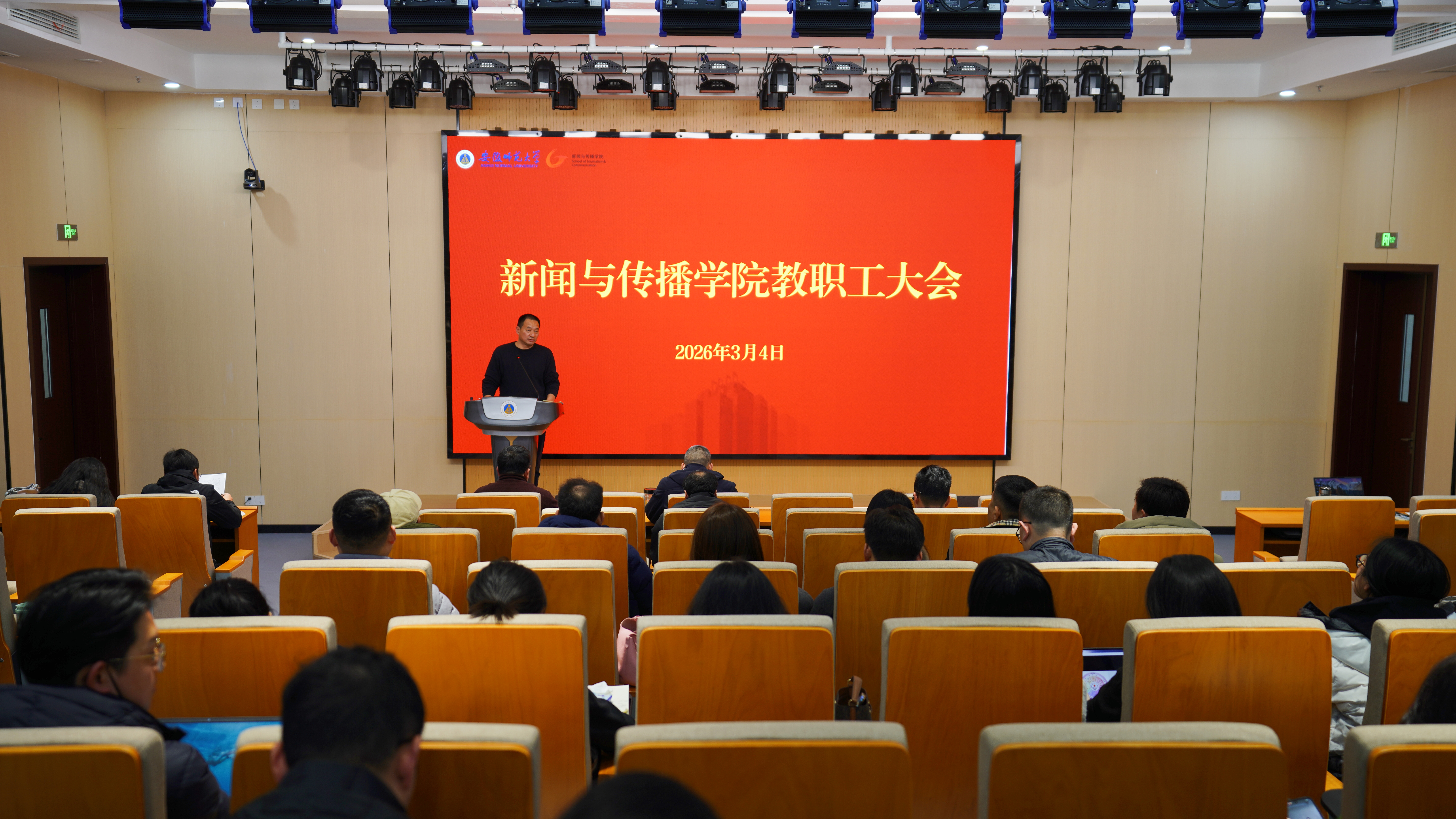 3月4日下午,新闻与传播学院在望道楼E号楼101会议室召开2026年人才培养工作会议暨新学期教职工大会。学院全体教职工参会,会议一体部署立德树人根本任务与新学期各项重点工作,为学院高质量发展明确方向、压实责任。