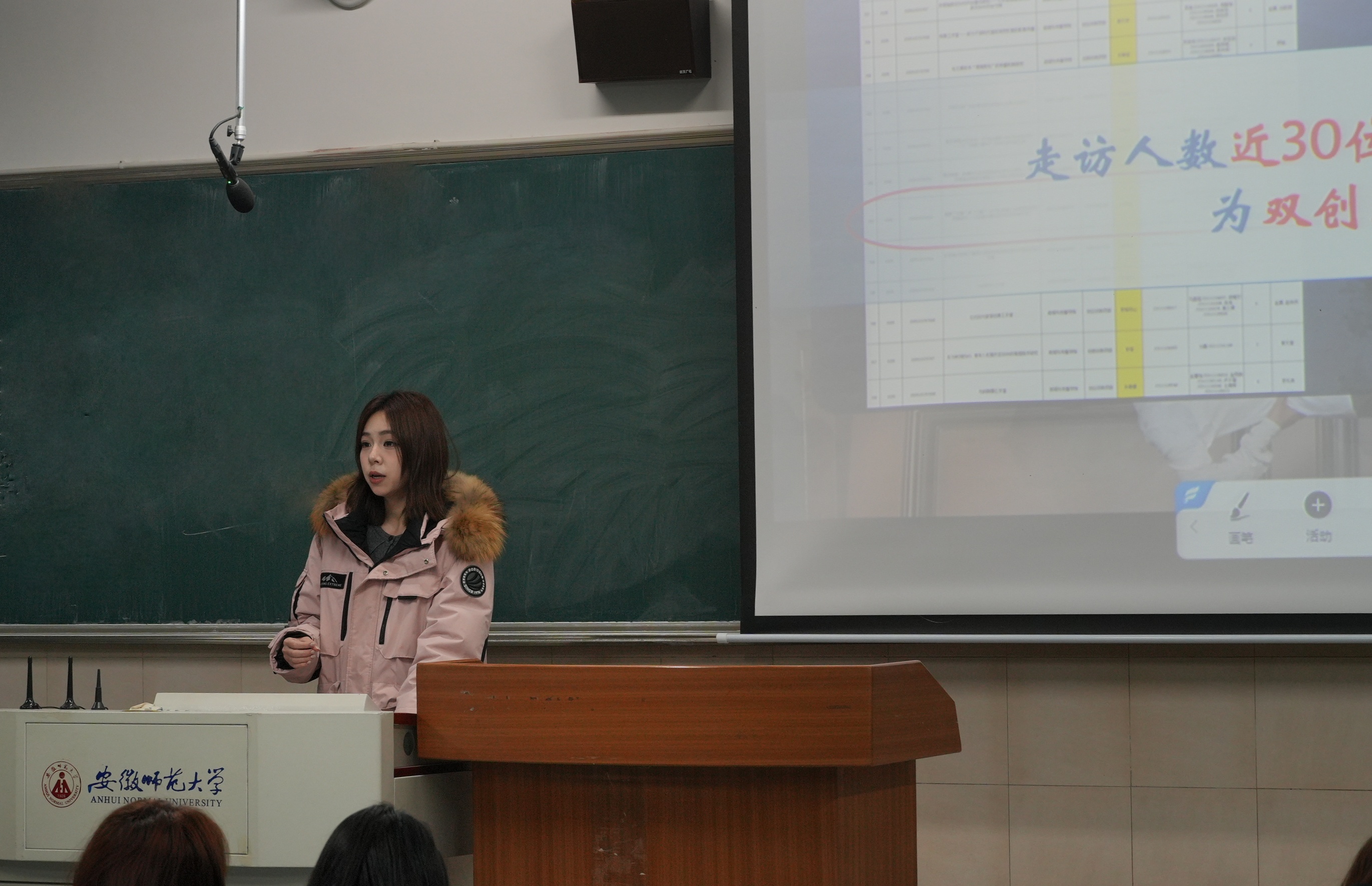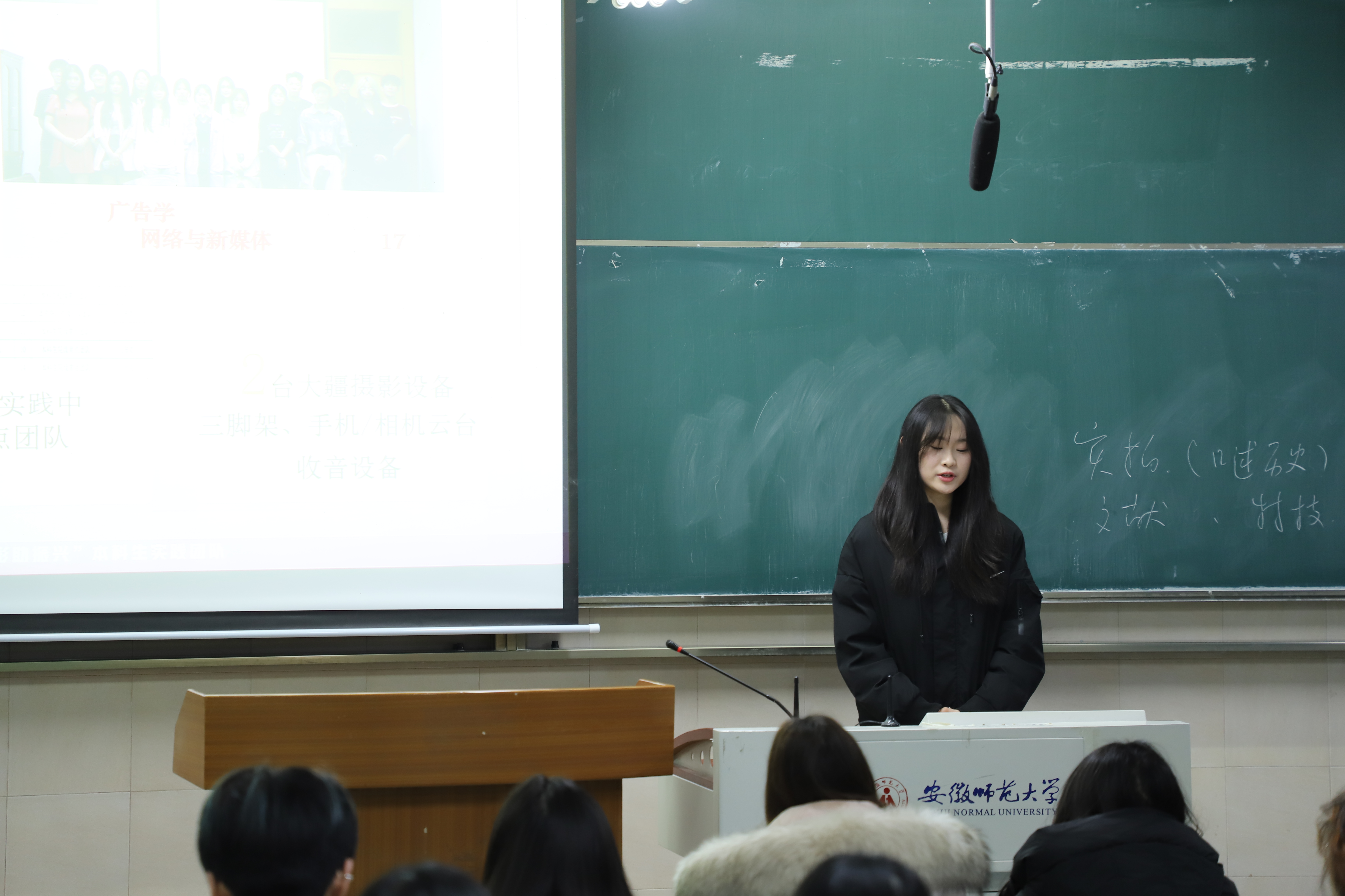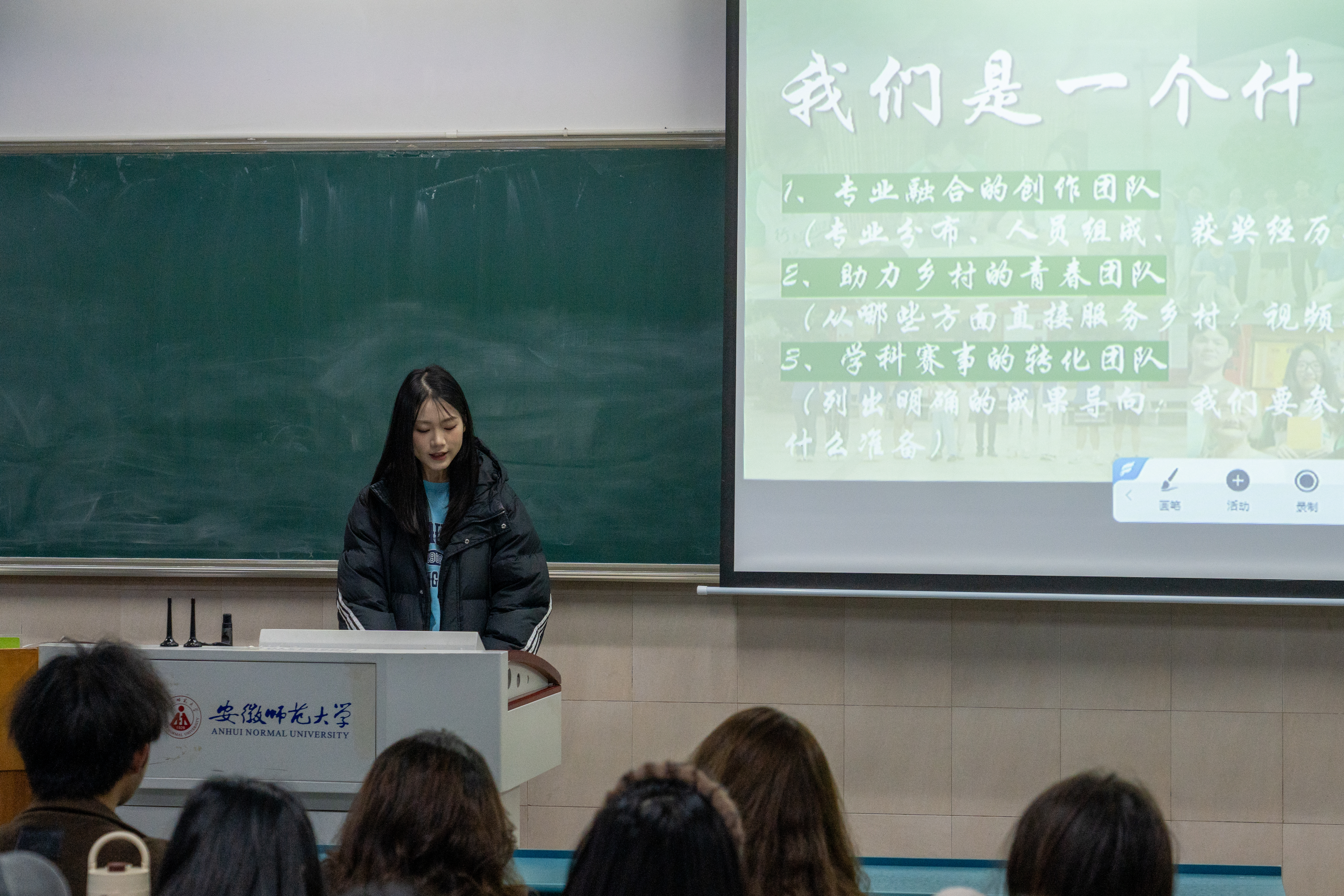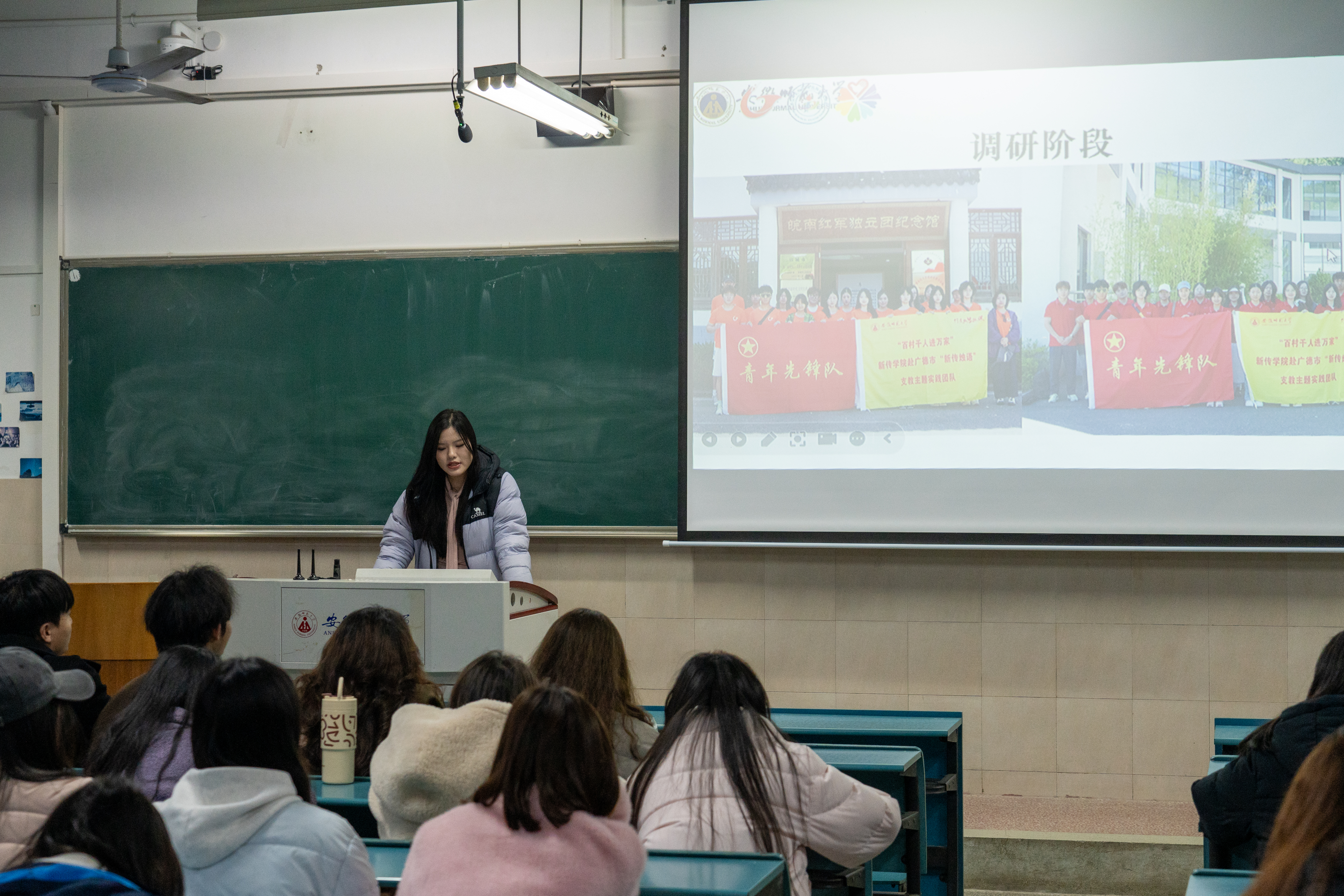 2023级播音与主持艺术专业的纪思彤、赵思琦和吴瑞睿用亲身经历诠释了“做得怎么样”。从地点选择、前期筹备,到实地拍摄、后期成果产出,她们将全过程娓娓道来。纪思彤还特别分享了暑期社会实践答辩的注意事项,从材料准备到现场呈现,给出了具体建议;赵思琦则展示了团队精心设计的明信片和系列影像作品,并鼓励同学们:“带着问题出发,带着作品回来。”吴瑞睿分享了“七彩假期志愿服务队”在广德市的支教实践,从项目缘起讲起,逐一梳理了七彩课堂的教学设计、以调研为根基的需求分析、结合当地文化的文创开发,以及后续的投稿与后期收尾工作。“支教不仅是‘教’,更是‘学’。”她强调,只有把前期调研做扎实,才能真正走进孩子们的世界。