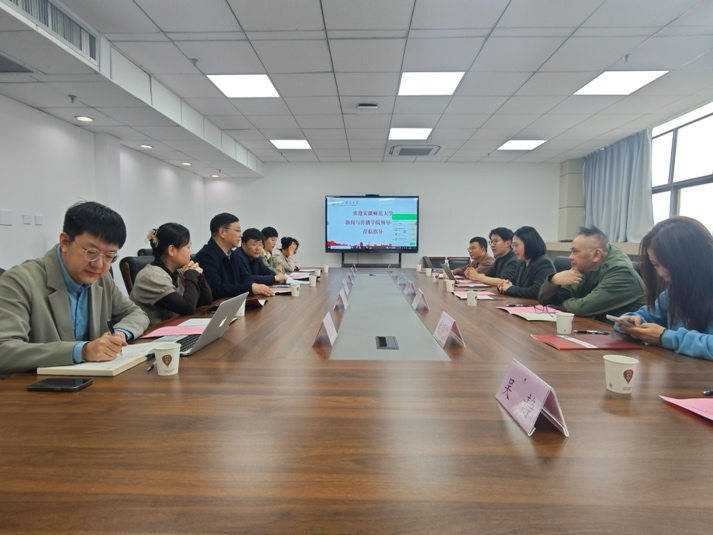在江苏师范大学传媒与影视学院,交流重点转向智媒时代语境下的专业调整与教学创新。双方围绕学科专业调整优化这一现实课题展开深度对话。该院与会代表系统介绍了本硕特色人才培养及社会服务开展情况,并分享了面向行业前沿的专业布局与实践管理经验,这些举措为我院应对技术变革、优化教学体系提供了极具价值的参考。
