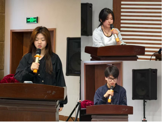 随后,学生代表董雅婷、杨佳琪、谢立伟依次汇报了作品创作情况。董雅婷同学围绕采风行程,细致讲解拍摄规划、素材采集思路与创作思考;杨佳琪同学聚焦呈坎鱼灯表演,以影像呈现非遗鱼灯的独特魅力,分享记录非遗文化的拍摄心得;谢立伟同学通过村庄风景作品,全方位展示皖南古村落的自然风貌与人文景致。三位同学的汇报详实丰富,充分展现了此次采风实践的专业学习成果与创作能力。