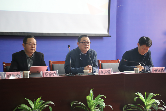 会议伊始,邵振奇首先介绍了参会人员,回顾了七年来播音专业在该次赛事上取得的成绩。随后,他解读了此次赛事及其系列活动的背景,介绍了前期筹备和人员分工情况。随后,校教务处副处长、创新创业教育学院副院长李汪根发表讲话。他指出,我校承办全省大学生诗文朗诵比赛及其系列活动有着重要的意义,应从卓越人才与创新人才培养的高度进行认识。他强调,作为应用型专业,应以承办高质量专业赛事为抓手,实现以赛促教、以赛促学、以赛促建,不断提升学生专业技能和综合素质。李汪根代表学校主管部门感谢新传学院和播音专业给学校带来的荣誉与贡献,并希望同学们夯实基础,展现优秀作品,办好系列活动,为校争光。