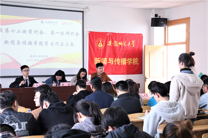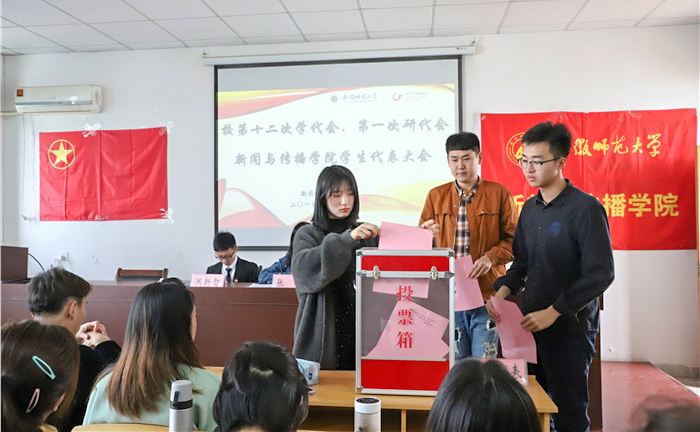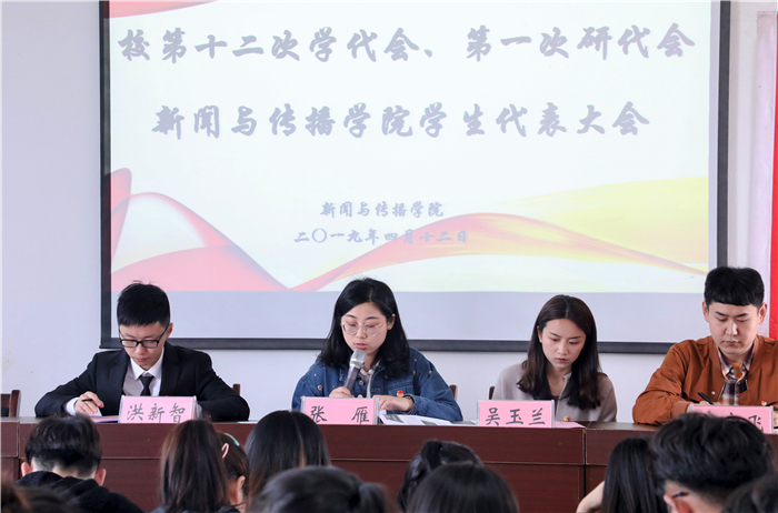 为全面开展学院学生工作,进一步对接校学生代表大会工作安排,新传学院于4月12日下午1点在院楼四楼会议室召开了校第十二次学代会新闻与传播学院学生代表大会。本次会议由院团委书记张雁主持,院团委学生副书记吴玉兰、学生会主席洪新智、副主席曹寅飞、院团委委员,各年级专业、学生会及学生社团代表共同出席。