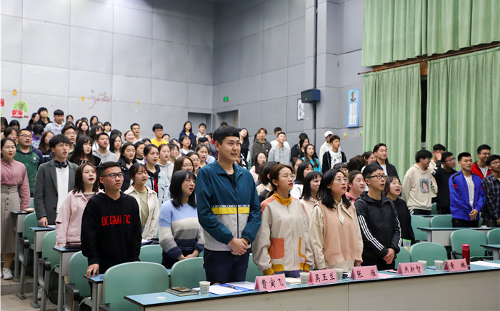 与会成员全体起立奏唱共青团团歌《光荣啊,中国共青团》。