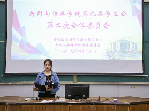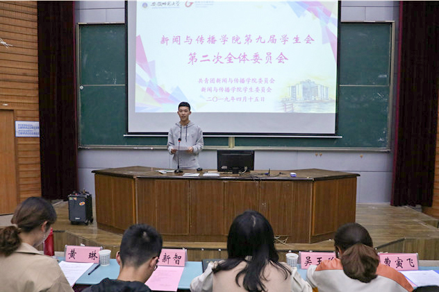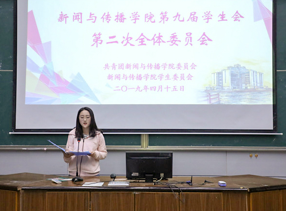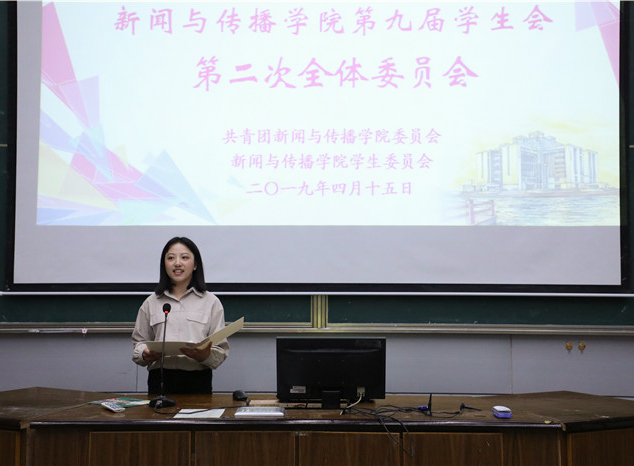 4月15日晚,新传学院第九届学生会第二次全体委员会于行知楼2010105教室举办。院团委书记张雁、第九届学生会主席团及学生委员全体成员参加本次会议,会议由副主席黄琳主持。