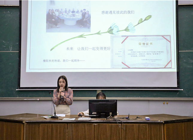 2018级优秀部员代表们也走上讲台分享自己半年来的体悟与收获。技术部王方表明自己掌握了扎实的技术,同时也学会合理安排自己的时间;宣传部张蓉蓉认为无论何时,都要做一个有责任、有爱心、有热情、有主动性的人;学习部王儒钰讲述了自己的成长历程,在新芽终长成绿叶的喜悦中收获了自信与满足;认证部卢钰通过自己失误出错但学姐暖心宽慰、给予理解的小事,谈到对部门的归属感;文艺部章海钰在学习和工作间找寻到真正的平衡,提出在担任学生干部的同时不能放下学生的本职任务——学习;新媒体部张之也感谢进入一个优秀的部门、遇见一群可爱的人,在成长这条路上得到大家的支持与鼓励。每一位部员的发言诚恳真切,结合部门的日常任务阐释了作为一名部员应具备的品质。
