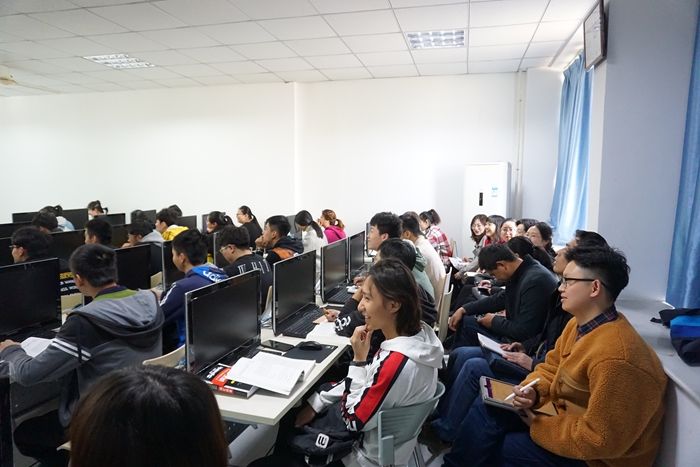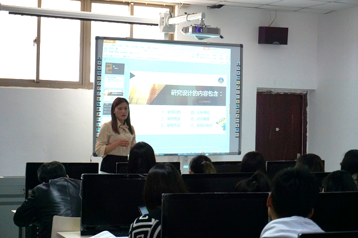 3月19日下午,新闻与传播学院网络与新媒体专业教师高月,在3号实验楼103实验室,给2016级网络与新媒体专业全体学生讲授了一堂《社会研究方法》示范观摩课。校督导团成员袁立庠教授、院党委副书记宋静、教学副院长马梅、院督导组成员和部分中青年教师参加了此次教学观摩活动。