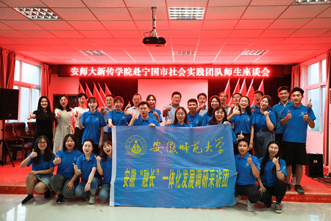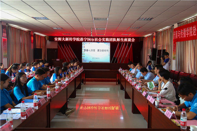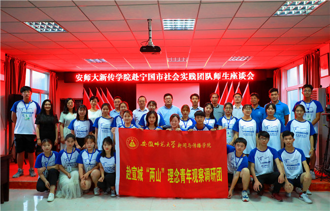 座谈会前,赴宁国的两支校级重点团队联合在驻地举行实践成果阶段性成果汇报会,汇报会由学院团委书记张雁主持。会上,张雁介绍了学院2019年暑期社会实践团队的整体组织运行情况。两支实践团队的队长:2017级新闻学叶俏薇和郭振丹分别用ppt汇报了各自实践团队的开展情况,并展示了团队专业融合实践作品——主题画册、杂志、明信片、书签以及人物、风光专题片。实践队员们在座谈会上依次畅谈了他们用心实践、历练技能、克服困难的收获体会。