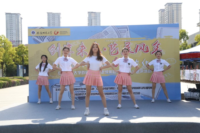 本次创意文化艺术的现场,播音与主持艺术专业的学生开展特色演出,献上诗歌朗诵《黄河颂》,在激昂的朗诵中,展示声音的魅力。舞蹈《我们都是追梦人》青春活跃,活力满满,绽放了播音专业学子的激情与活力,一曲《一生所爱》深深感染了在场观众,让大家看到了新传学子的不俗才艺。学生乐队把现场的气氛又推向另一个高潮,精彩绝伦的视听盛宴让创意文化节的气氛更加活跃。