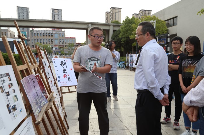 5月24日下午,新闻与传播学院以“创享未来,艺展风采”为主题的第六届大学生创意文化节暨安徽师范大学首届创新创业成果路演展示活动在花津校区西门广场正式拉开帷幕。保卫处处长孙成岗,新传学院党委书记张师帅,院长杨柏岭,副院长沈正赋、周伍、马梅、赵昊,党委副书记宋静、亲临现场观看并作指导。