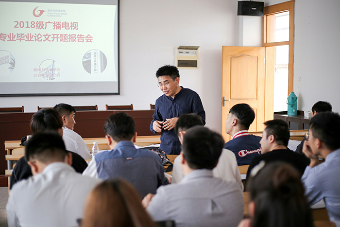 此次开题报告会共有11名2018级广播电视专业学生进行了开题报告答辩,同学们依次通过PPT演示的方式,具体阐述了自己的选题背景、选题意义、研究方法、内容框架、视频作品制作进度等方面的内容。同学们的毕业论文选题涵盖了影视套拍纪录片、城市形象宣传片、真人秀节目等多个广播电视研究领域。参与评审的导师们详细指出了各位同学的开题报告中所存在的问题,诸如文献综述条理性不足、结构逻辑不合理、研究缺乏创新性、论文与视频作品关联性不强等问题,并且提出了科学合理的修改意见。