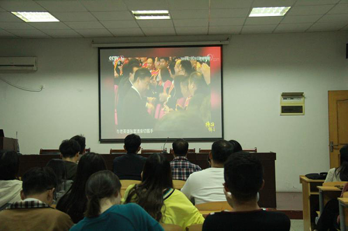 10月21日20:00,由中共中央组织部、中央广播电视总台联合录制的反映优秀共产党员和先进基层党组织典型事迹的专题节目《榜样4》,在中央电视台综合频道(CCTV-1)首播。新传学院组织师生党员集中在学院楼四楼会议室观看学习。