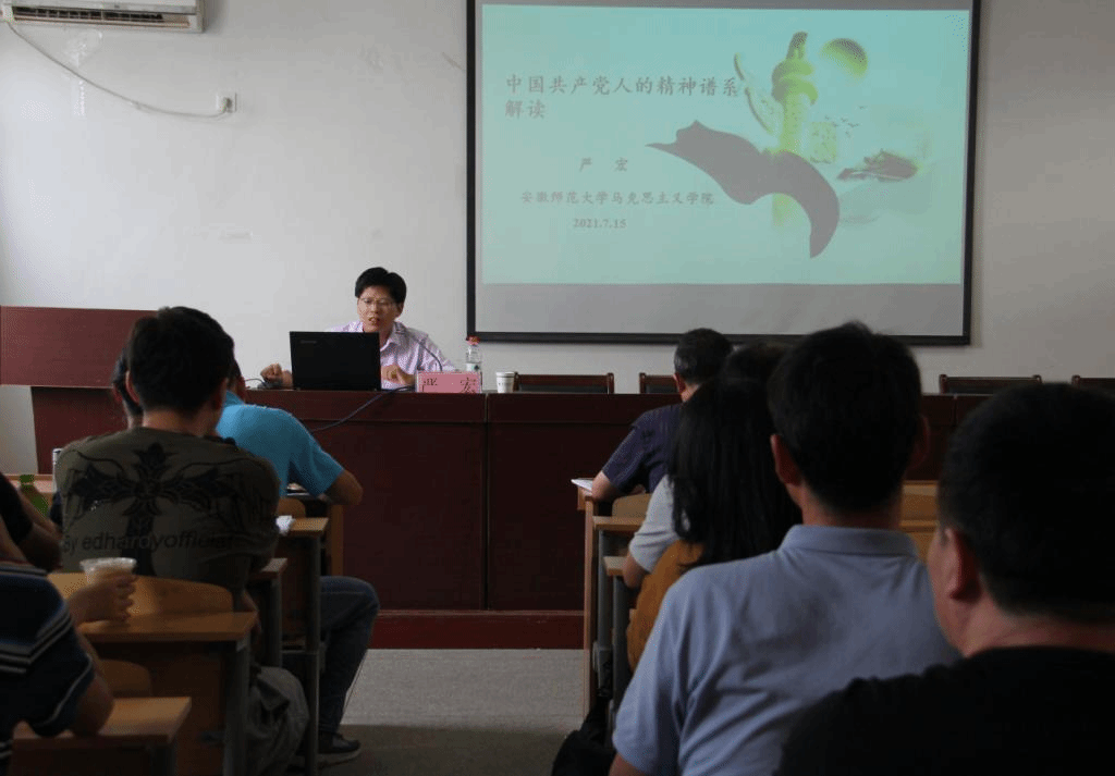 本网讯(新传学院)7月15日下午,新传学院召开党史学习教育专题专家报告会,邀请马克思主义学院党委书记严宏教授作题为《中国共产党人的精神谱系》专题报告,学院党政领导班子、全体教师参加,会议由学院党委书记张师帅主持。