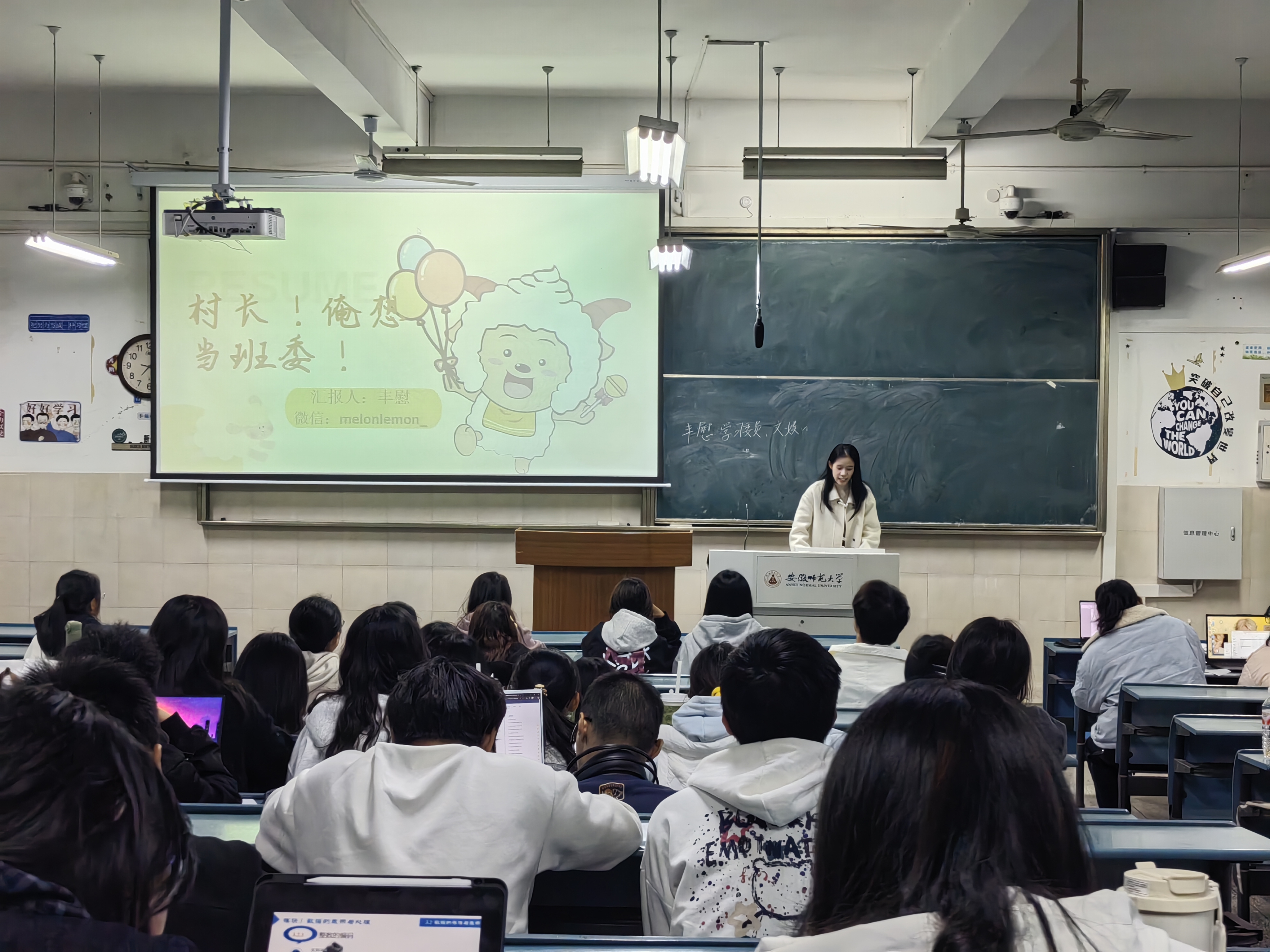 本次共计61位同学分别上台进行竞选演讲。竞选演讲结束后,各班级分别开展了现场投票,刘成俊当场宣布投票结果。本次班委竞选结果将结合班级投票、辅导员意见、班级导生意见综合得出,不日公示。