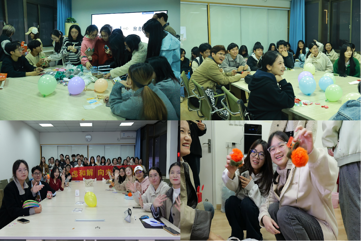 2023级、2024级新闻学专业各班分别开展了“emoji猜人物”“中药包DIY”“明信片寄语”“名字大作战”“几人几脚”“你划我猜”“青春心愿分享”以及投壶、套圈、音乐互动等趣味活动,让学生在轻松愉快的氛围中加强交流、缓解焦虑,增强班级归属感。