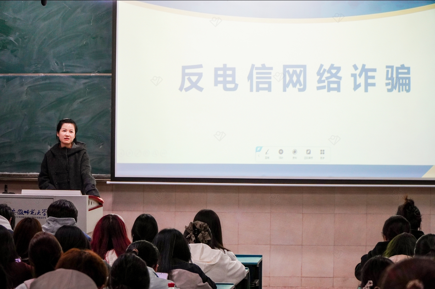 郑慧玲结合高校真实案例,介绍了刷单诈骗、冒充客服、虚假交易、网络交友诈骗等常见电信网络诈骗形式,详细讲解其作案手法与识别技巧,提醒同学们做到“不轻信、不透露、不转账”,保护好个人信息与财产安全。班会还重点解读了学生管理“四项禁令”中与网络安全相关的条款,强调规范网络行为、杜绝参与诈骗传播等要求,引导学生树立法治观念,自觉抵制不良信息。
