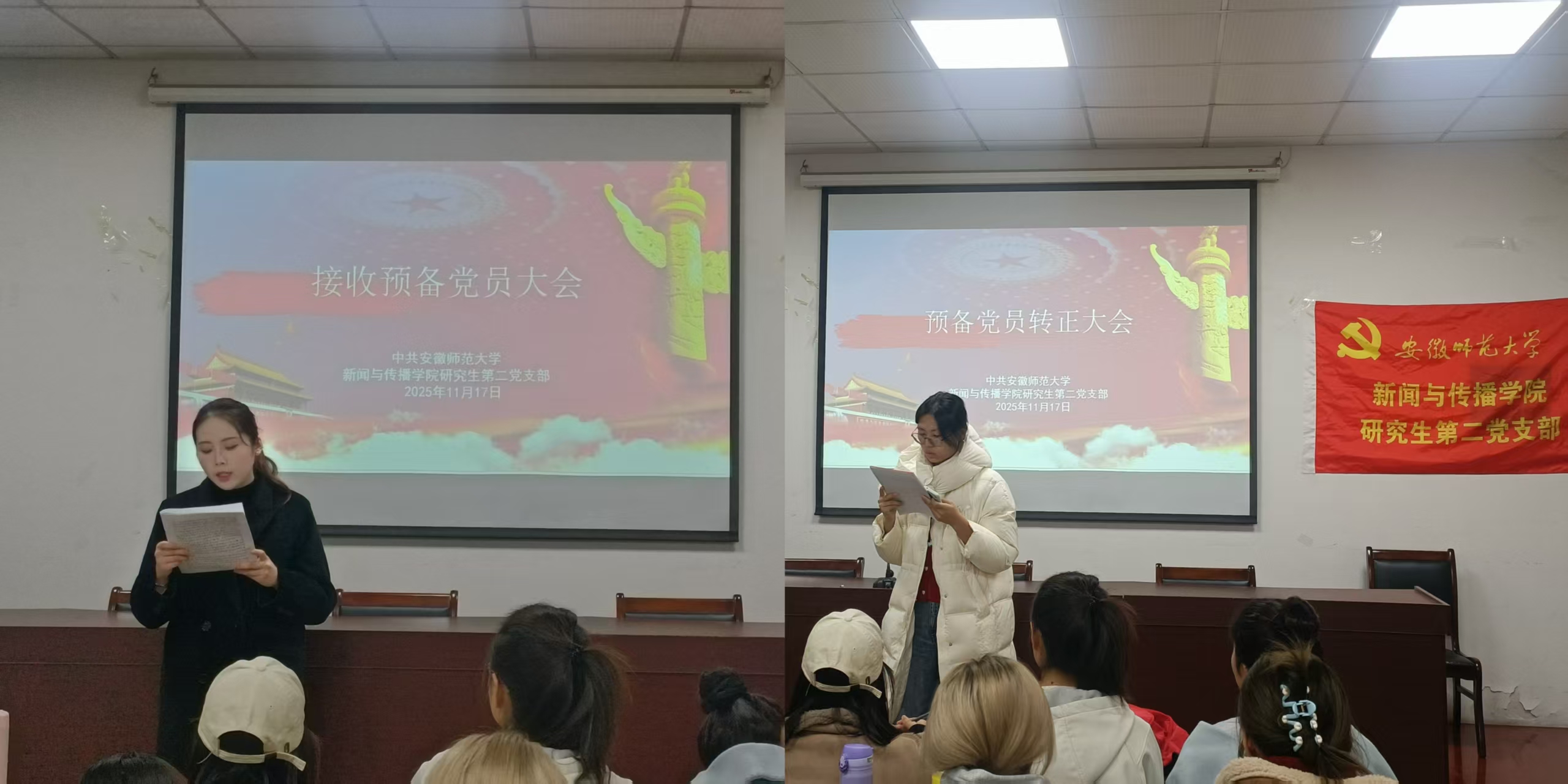 为严格规范发展党员工作,加强党员队伍建设,筑牢基层党组织战斗堡垒,2025年11月17日,新闻与传播学院研究生第二党支部在学院会议室召开接收预备党员暨预备党员转正大会。党支部书记张伟主持会议,支部全体党员、预备党员及入党积极分子代表参会,学院党委委员秦枫教授应邀列席指导。