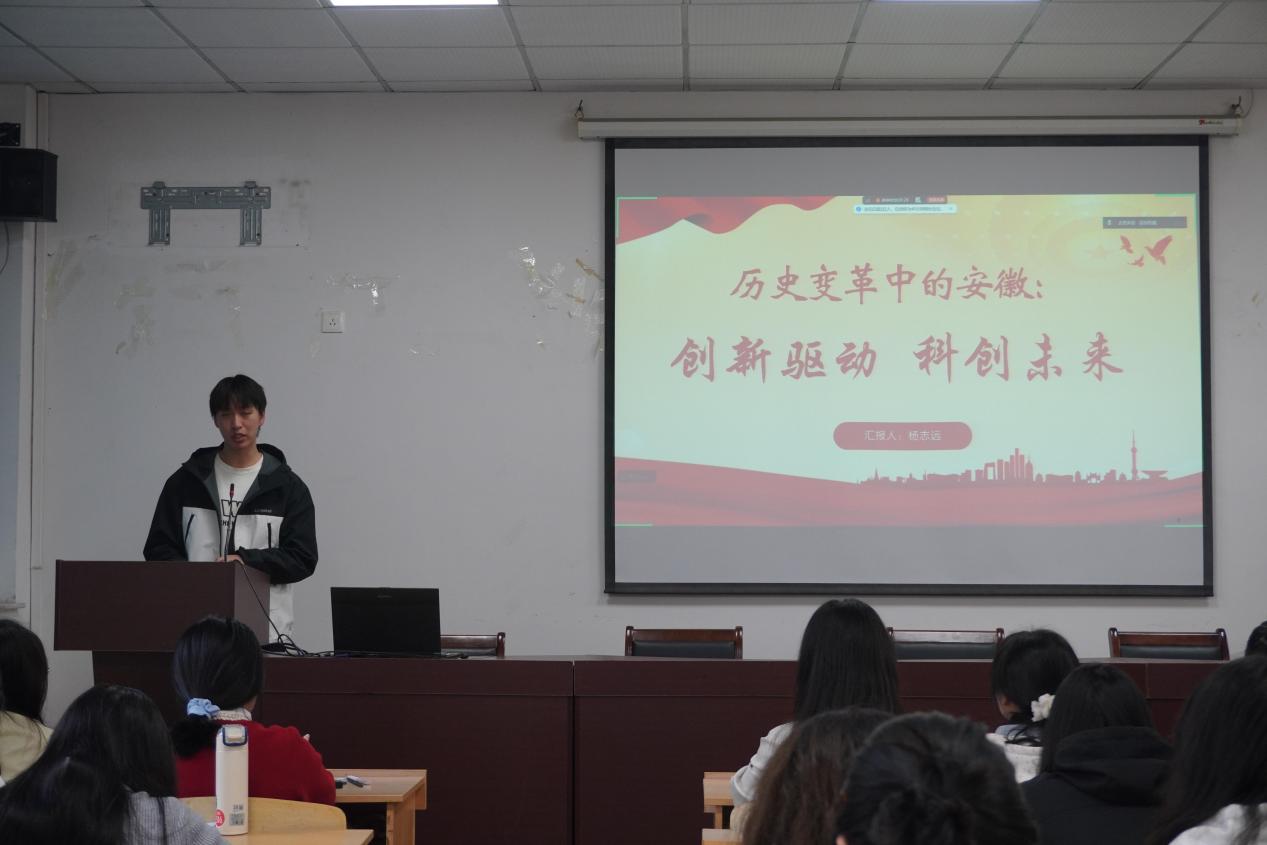 会上,杨志远同志以《历史变革里的安徽:创新驱动 科创未来》为题展开分享。他从安徽科创发展的历史脉络切入,通过展示量子信息、人工智能、新能源汽车等领域的突破性成果,系统阐释了创新在区域发展中的核心引擎作用。结合安徽从传统农业大省向科创强省的转型实践,他谈到,科技创新是破解发展难题、激发社会活力的关键抓手,正是坚持把创新摆在发展全局的核心位置,才能推动区域经济实力、科技实力跃上新台阶,这与习近平新时代中国特色社会主义思想中“坚持创新驱动发展”的重要论述高度契合。