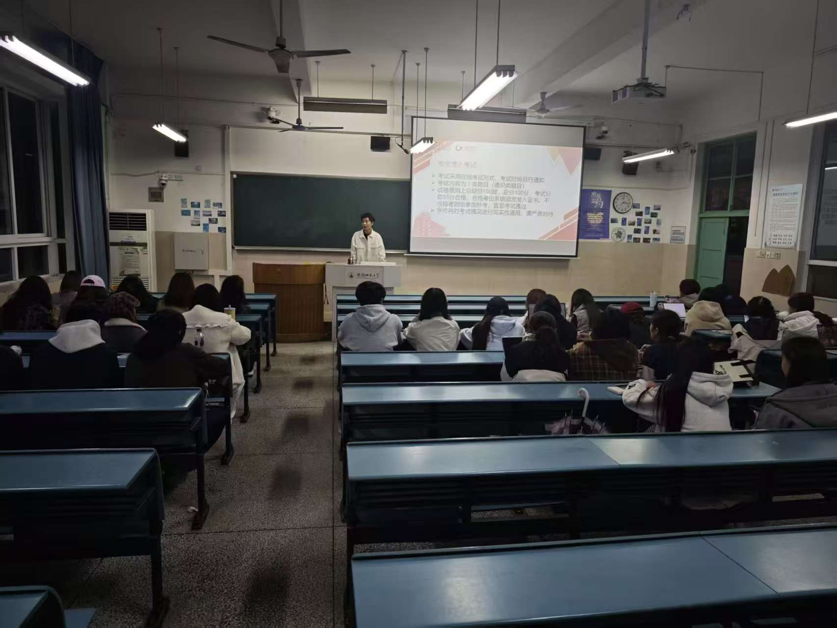 11月13日晚,辅导员郑慧玲组织三个专业全体同学在行知楼2040304教室召开实验室安全月活动主题班会,向同学们强调此次活动的重要性,并叮嘱同学们按时参与活动,完成在线考试。