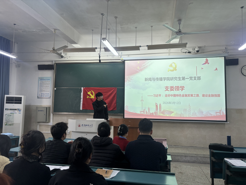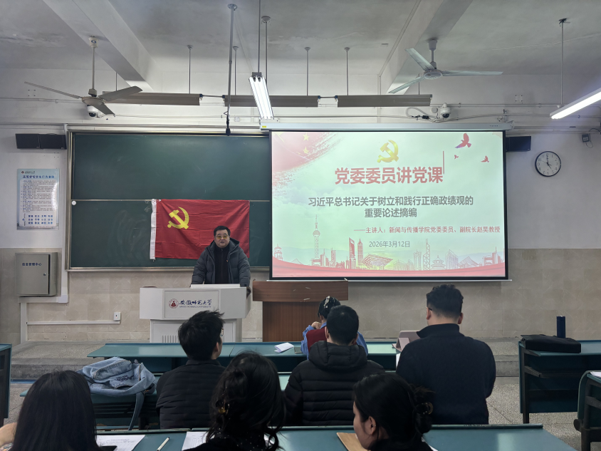 2026年3月12日下午,新闻与传播学院研究生第一党支部于行知楼2010104教室召开支部大会,会议包括2025年度组织生活会以及“树政绩之正 践初心之实”主题党日活动。支部书记章文宜主持了会议,学院党委委员、副院长赵昊教授出席并授课,支部全体党员参与本次活动。
