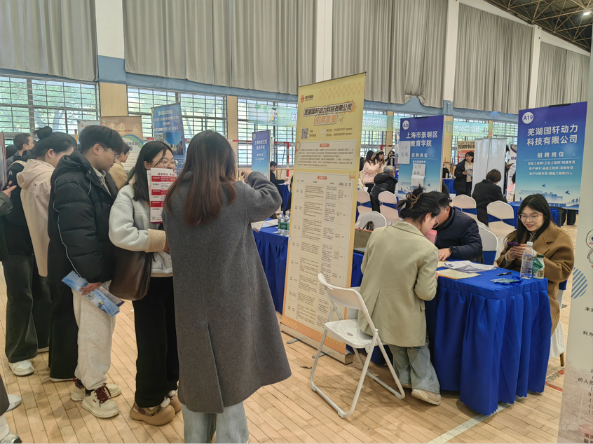 次日,国轩高科在花津校区北体育馆举办专场招聘会,本院学生到场深入咨询和了解企业情况。