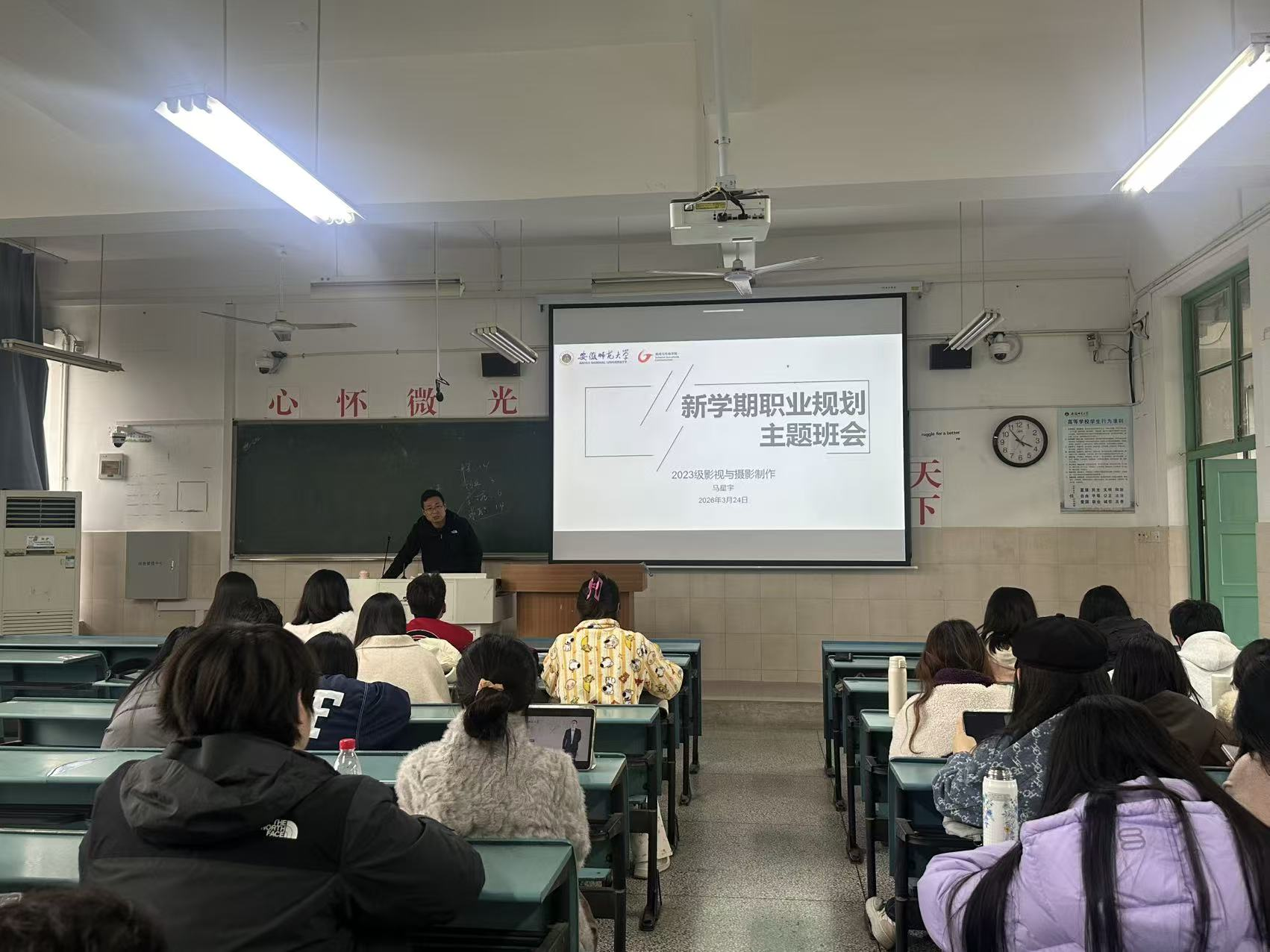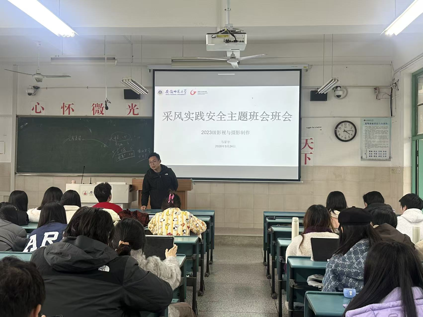 3月24日下午,2023级影视摄影与制作班在行知楼5号楼402教室召开主题班会。本次班会由导员马星宇老师主持,23级影制班全体同学参会,围绕新学期职业规划与采风实践安全两大核心主题展开,为同学们的专业成长与实践出行保驾护航。