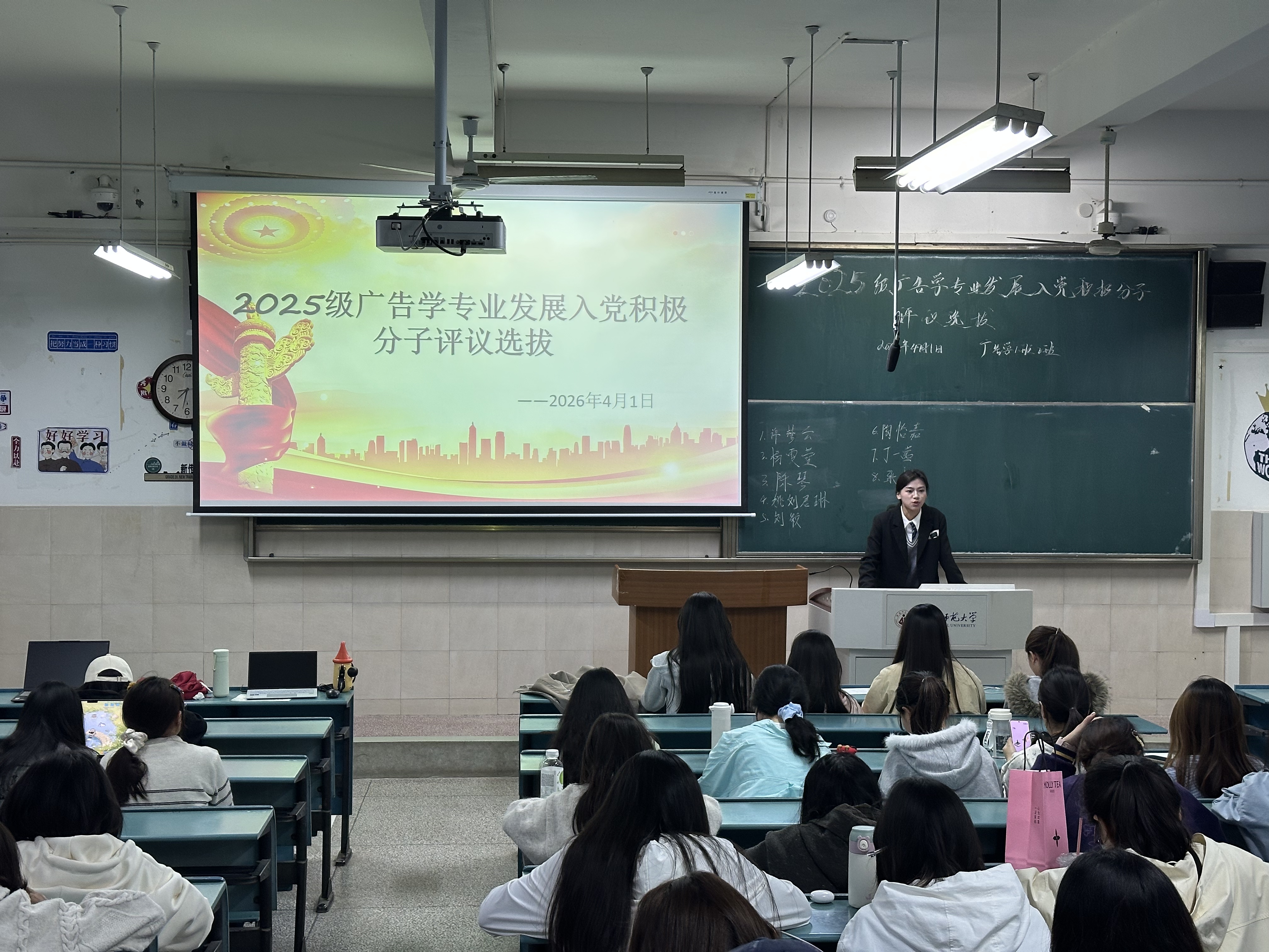 本网讯(新闻与传播学院 陈颖)2026年4月1日,2025级新闻、广告三个班分别在各自指定教室同步开展入党积极分子选拔工作。会议由各班团支书主持,辅导员刘成俊参加会议。