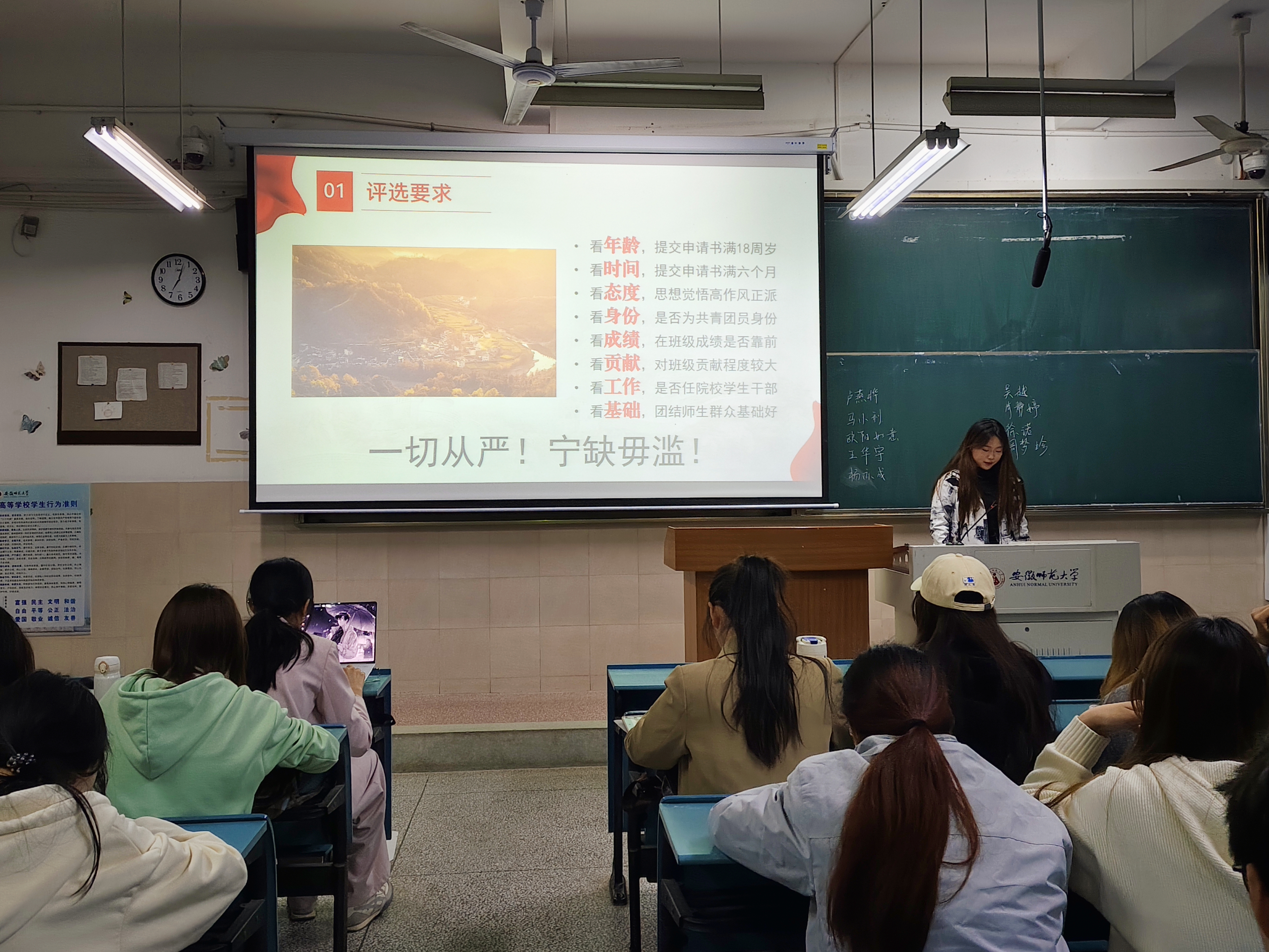 各班会议流程规范统一。团支书首先向本班同学公布入党积极分子评选要求,明确发展入党积极分子“八要素”,并对本班候选人情况进行公示,确保评选工作公平、公开、公正。各班候选人依次上台发言,围绕自身入党动机、思想学习感悟、日常服务表现等展开汇报,表达了向党组织靠拢的坚定决心,展现出积极向上、严于律己的精神风貌。