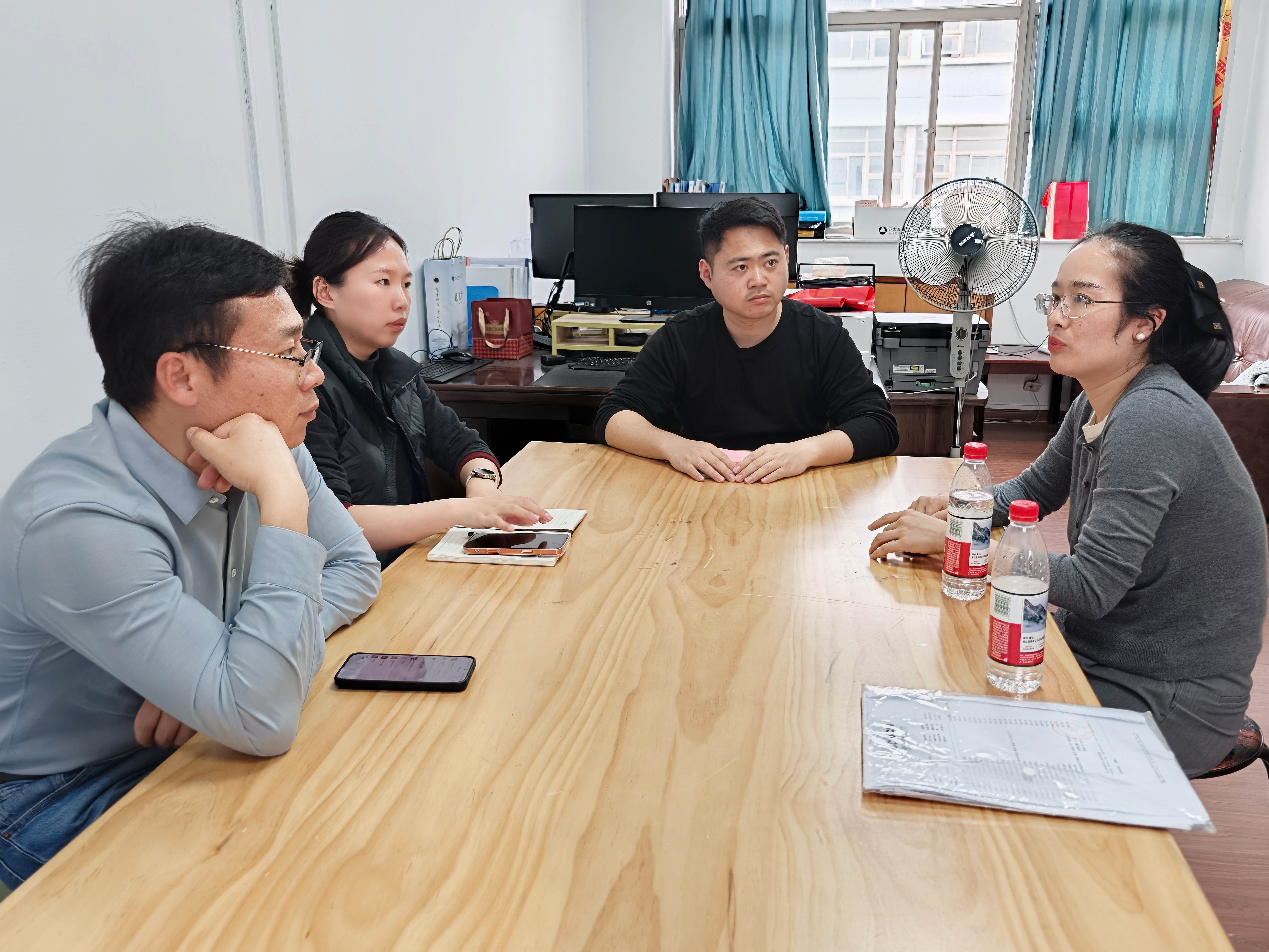 4月10日下午,学院副处级辅导员马星宇、毕业班辅导员汪笑笑、团委书记刘成俊同来访的芜湖海螺国际会议中心酒店副总经理龙倩和营销部高级销售经理朱叶进行专项招聘洽谈交流。