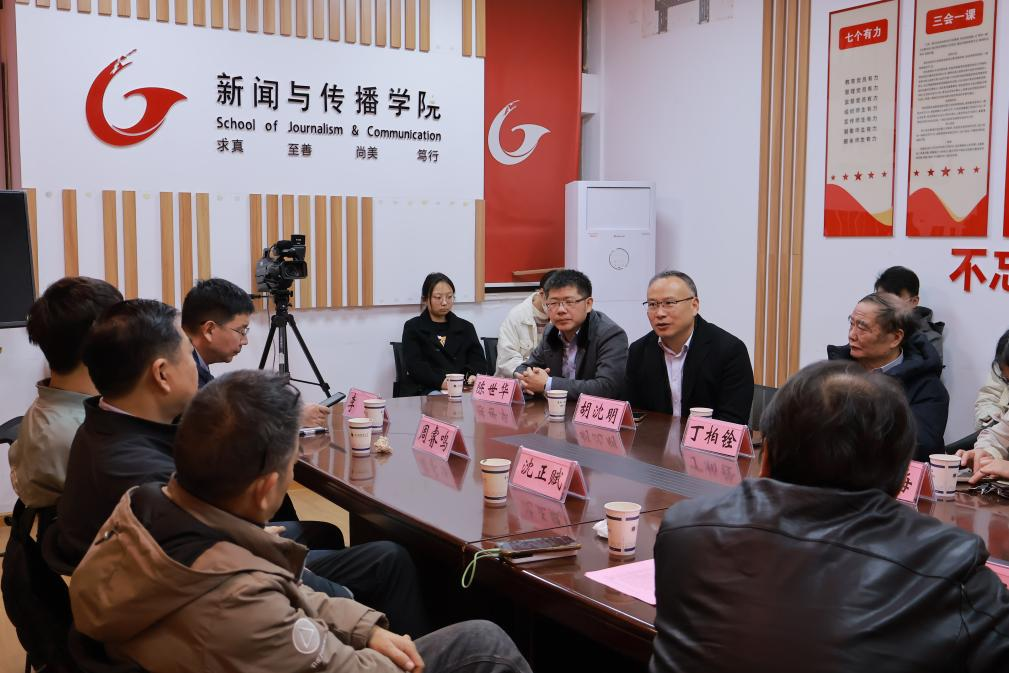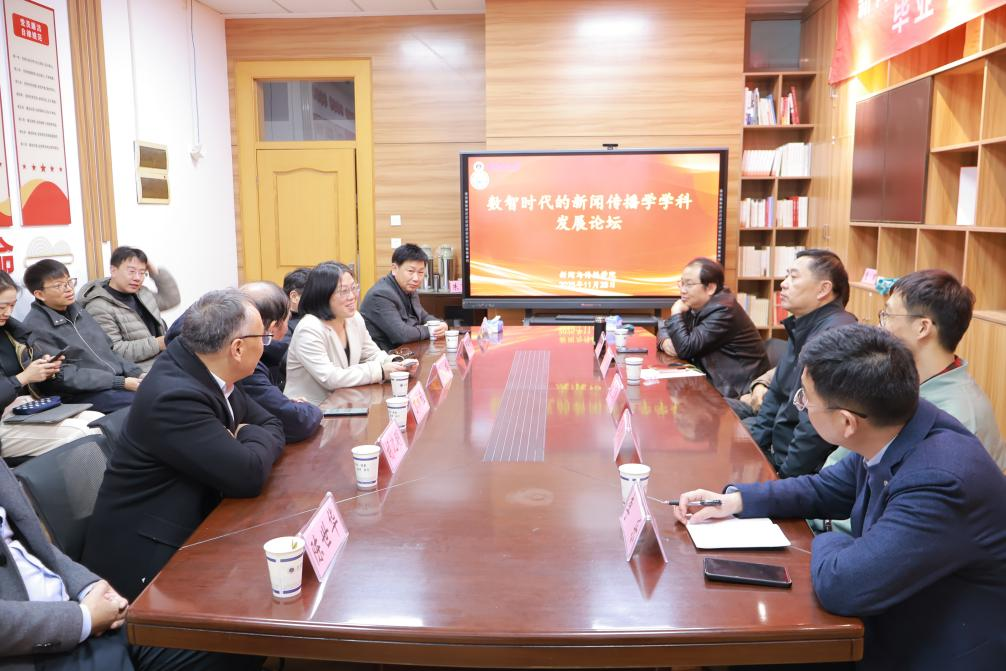 2025年11月28日晚7时,数智时代新闻传播学学科发展论坛在安徽师范大学(花津校区)新闻与传播学院楼507隆重举行。安徽师范大学新闻与传播学院院长马梅教授主持该论坛,新传学院部分教师到场聆听学习。论坛开展期间,与会者围绕新闻与传播学科在数智时代未来的发展与变革展开了热烈的学术讨论。